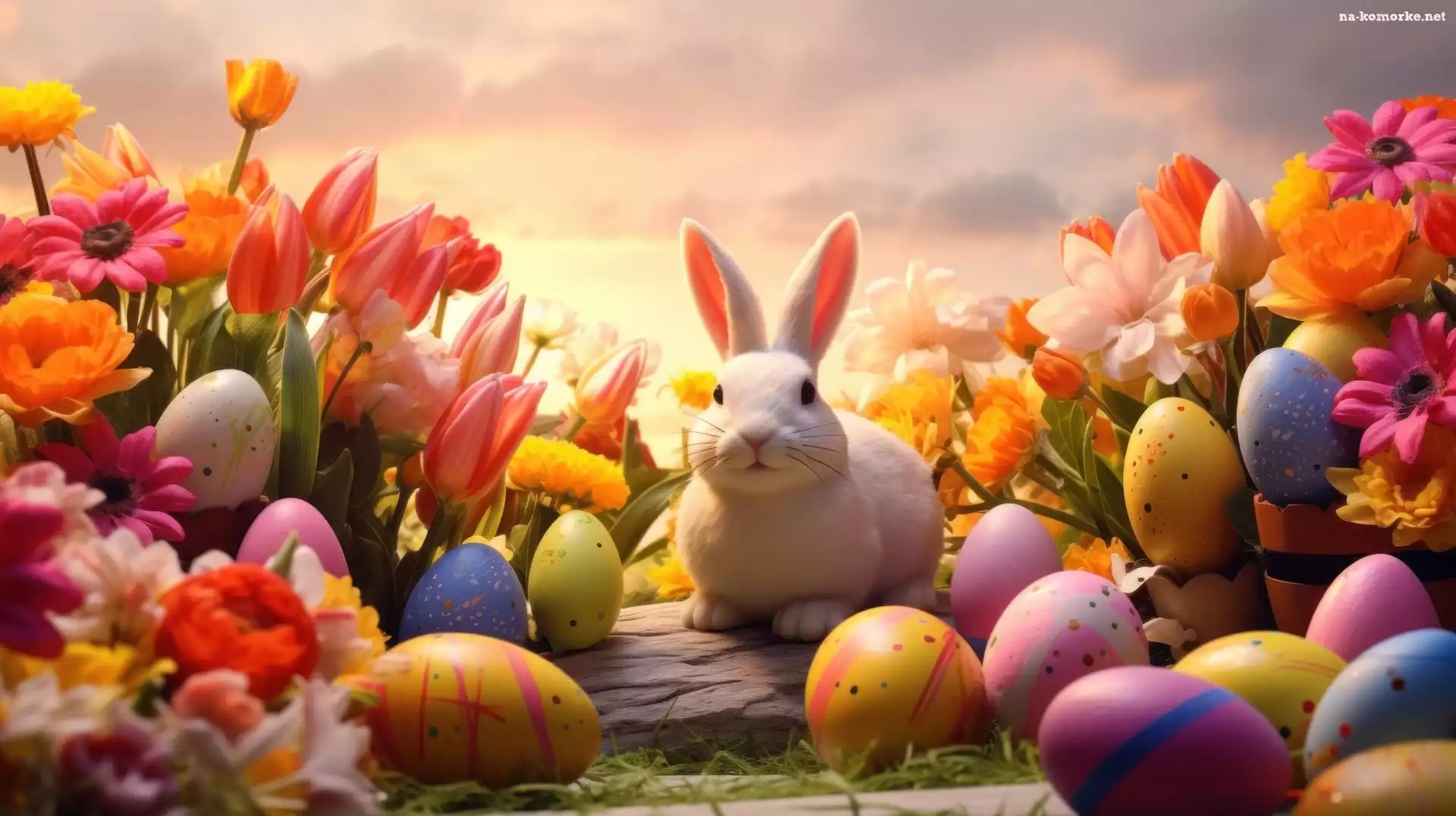 Kolorowe, Wielkanoc, Kwiaty, Grafika, Pisanki, Królik na Komórkę