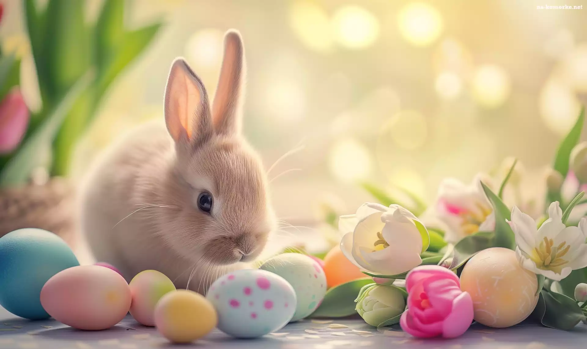 Kwiaty, Wielkanoc, Pisanki, Grafika, Kolorowe, Królik na Komórkę