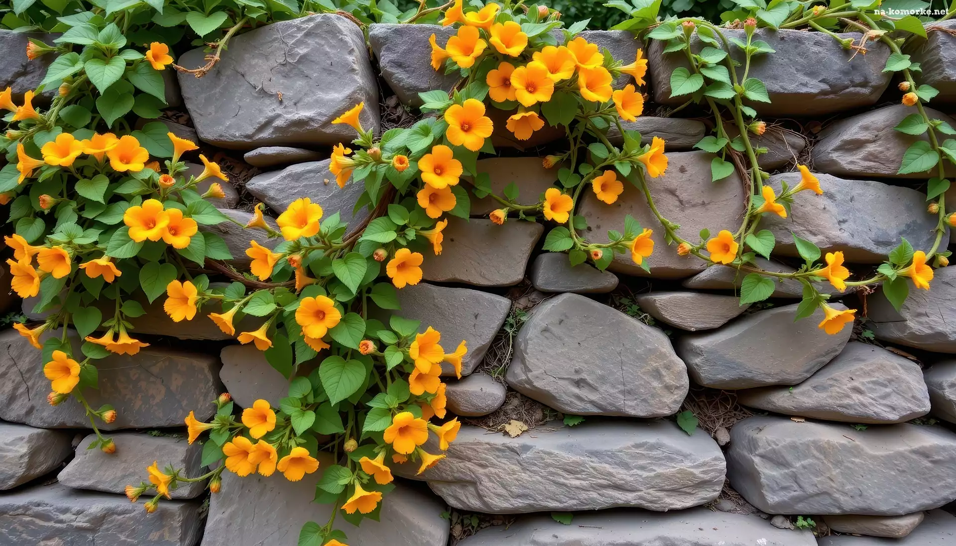 Mur, Pomarańczowe, Kamienny, Grafika, Pnącze, Kwiaty na Komórkę