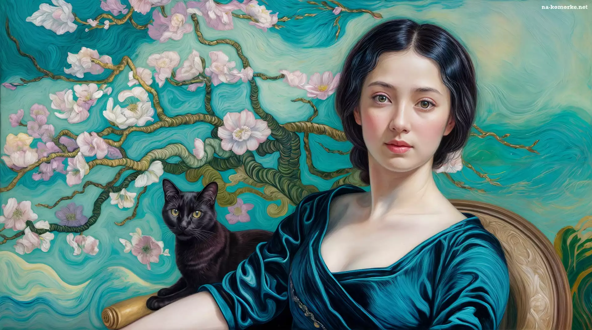 Gałązki, Kobieta, Kwiaty, Grafika AI, Fotel, Kot na Komórkę