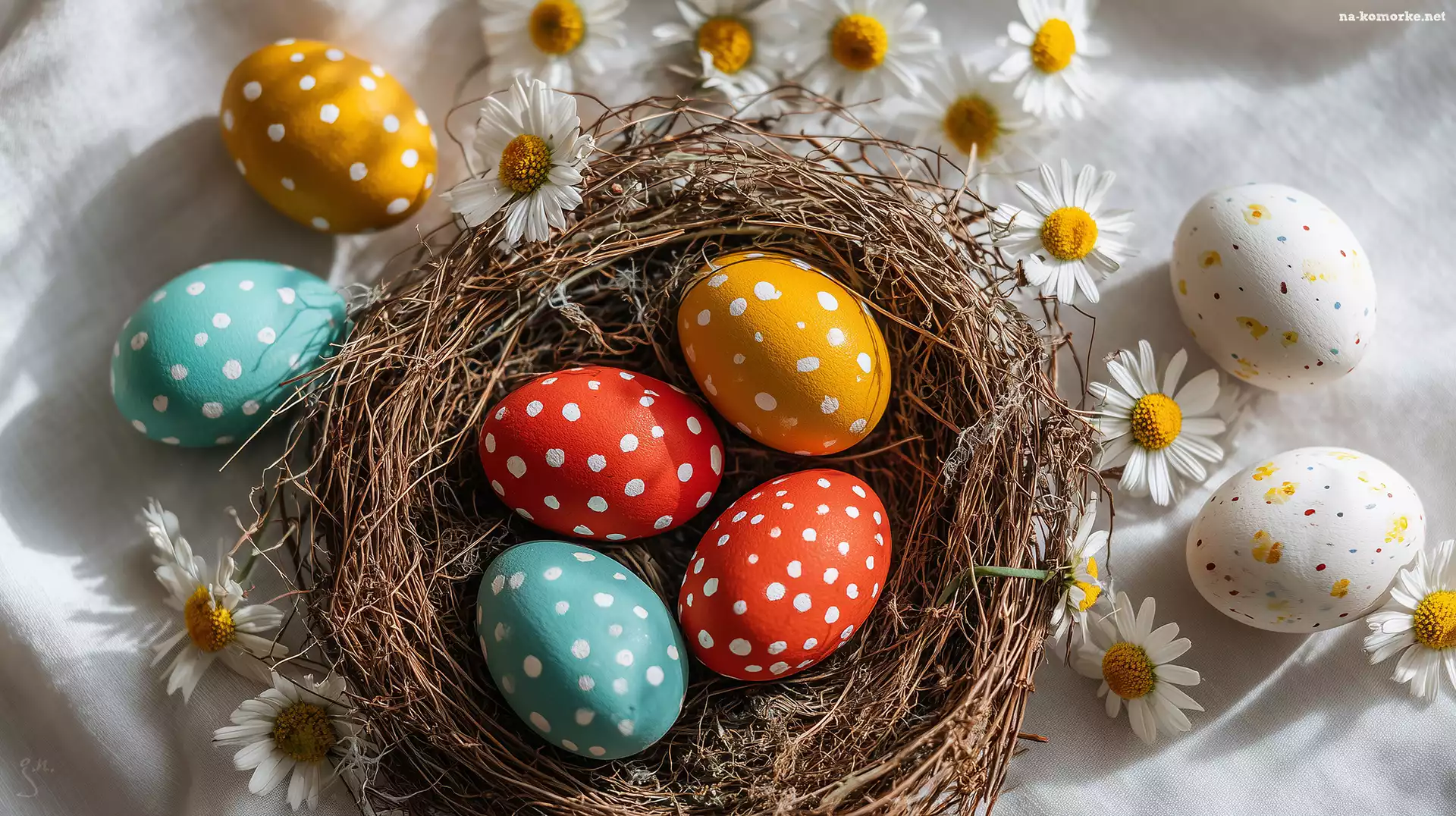 Wielkanoc, Kolorowe, Kwiaty, Grafika AI, Gniazdko, Pisanki na Komórkę