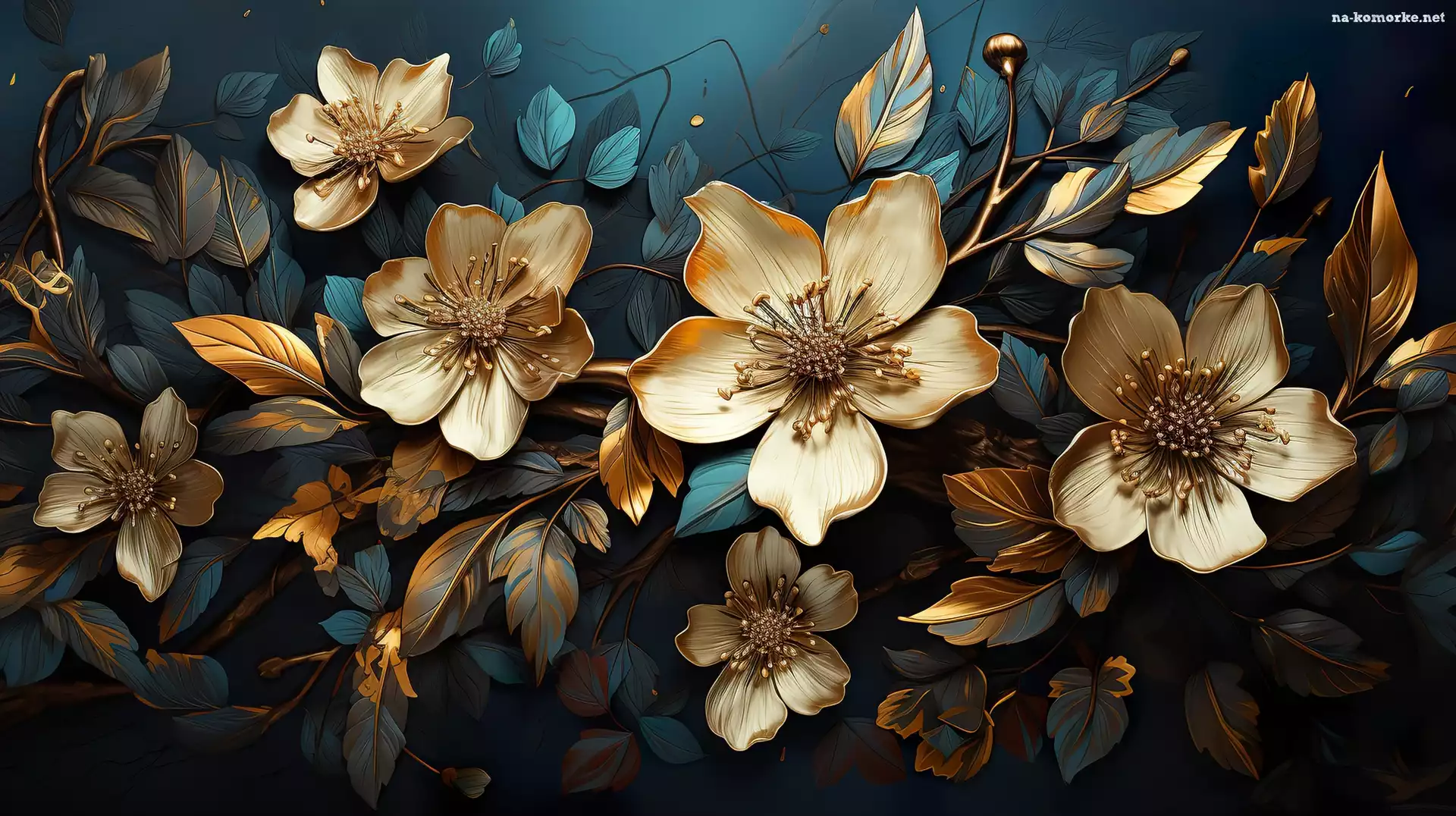 Tło, Złote, Listki, Grafika, Zielone, Kwiaty na Komórkę