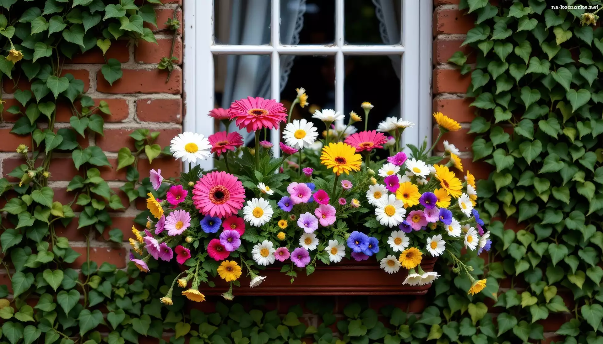 Bluszcz, Kolorowe, Ściana, Grafika, Okno, Kwiaty na Komórkę