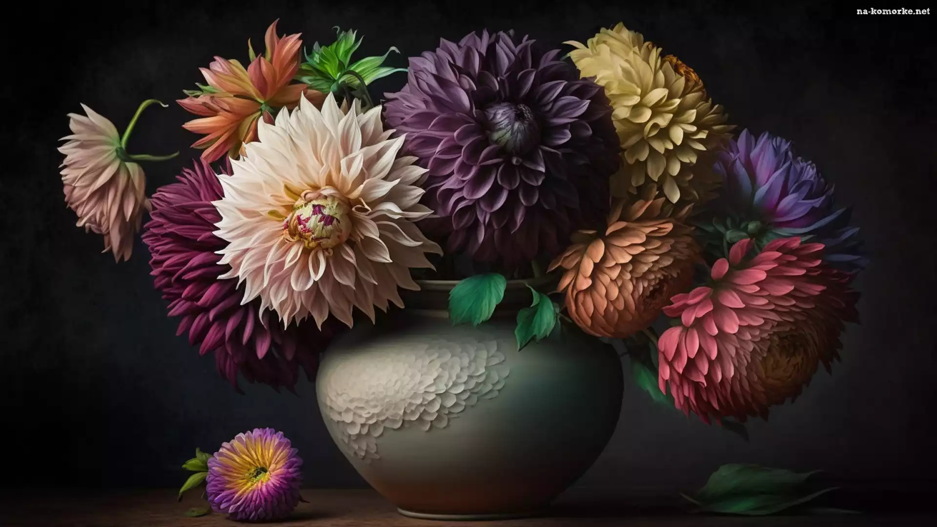 Drewniany, Stół, Kwiaty, Grafika, Dalie, Wazon, Kolorowe na Komórkę