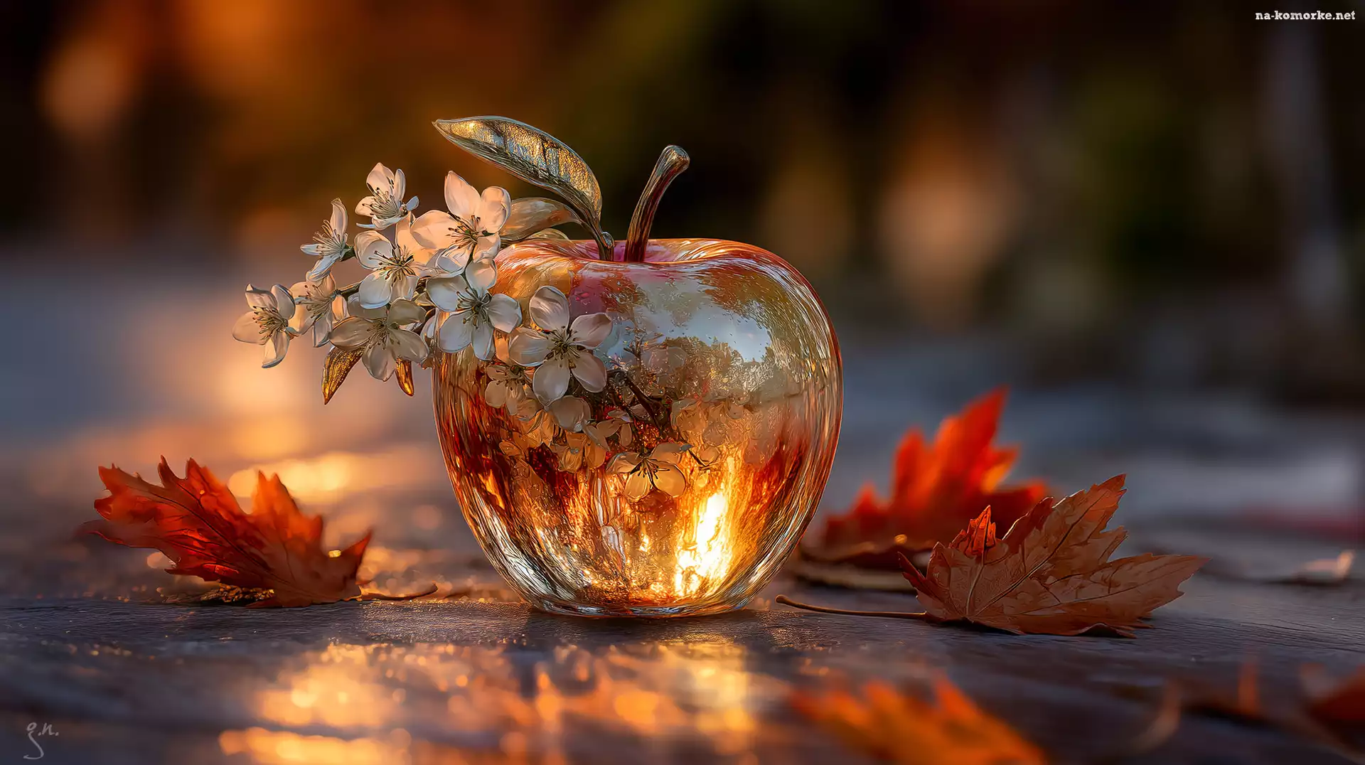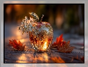 Liście, Szklane, Kwiaty, Grafika AI, Białe, Jabłko na Komórkę
