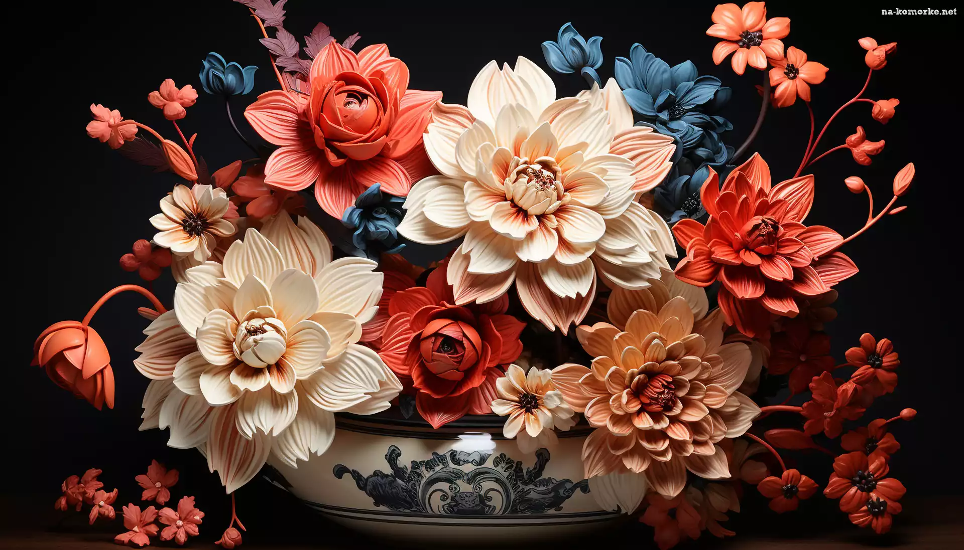 Liście, Wazon, Kwiaty, Grafika, Bukiet, Pąki, Kolorowy na Komórkę