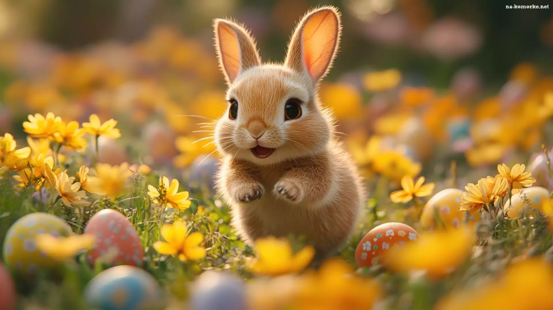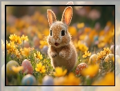 Wielkanoc, Zajączek, Łąka, Grafika AI, Kwiaty, Pisanki na Komórkę