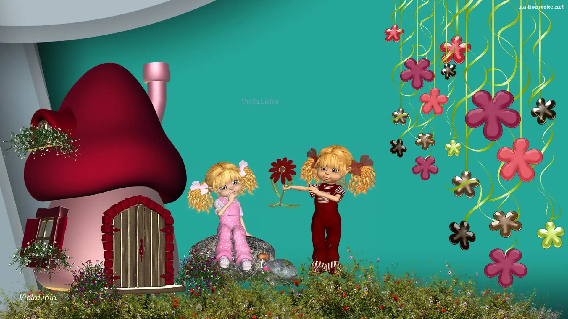 Grafika, Kwiaty, Laleczki, Domek na Komórkę