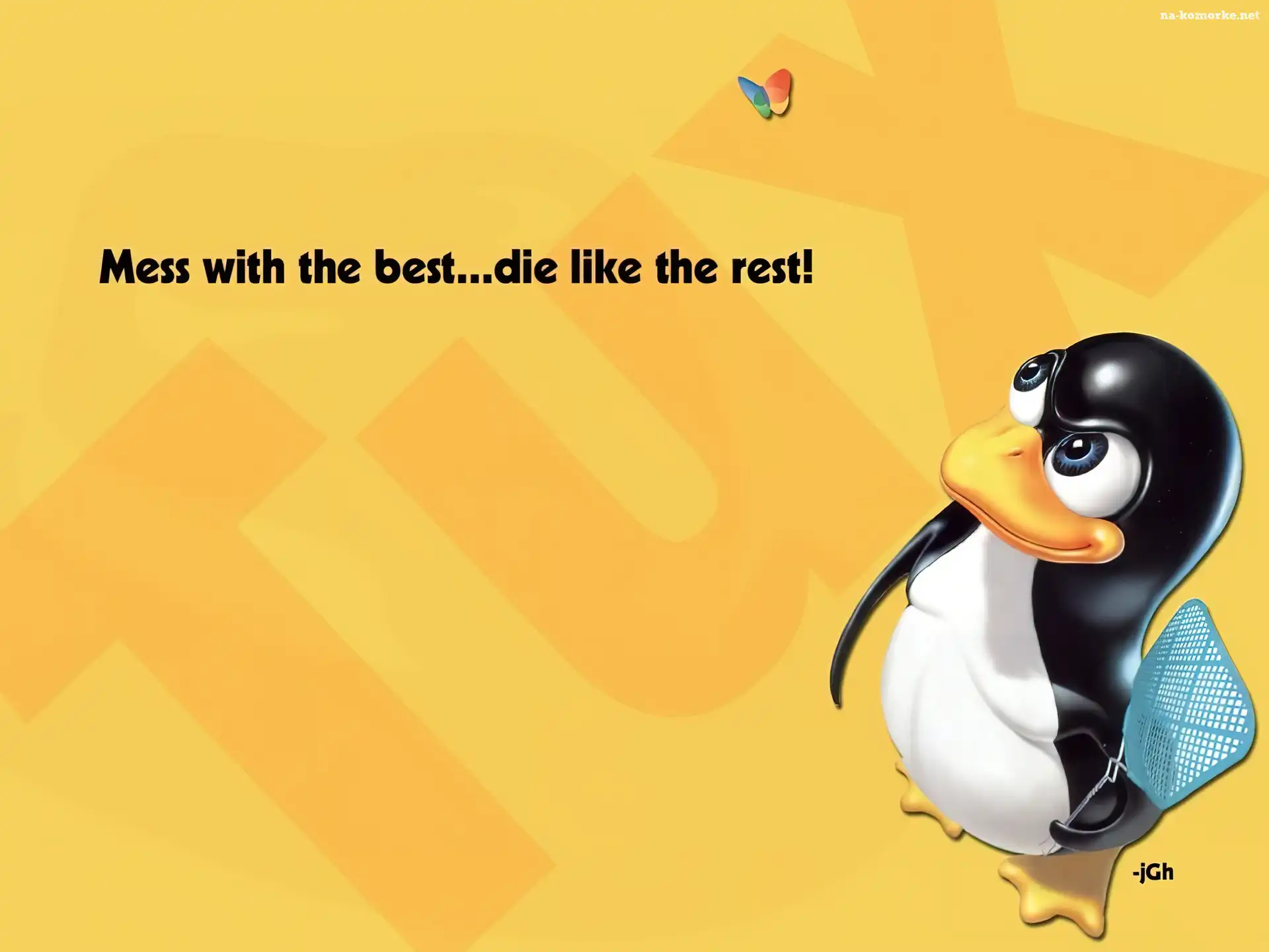grafika, Linux, pingwin, łapka, motyl na Komórkę