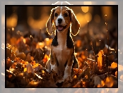 Jesień, Pies, Liście, Grafika AI, Szczeniak, Beagle na Komórkę