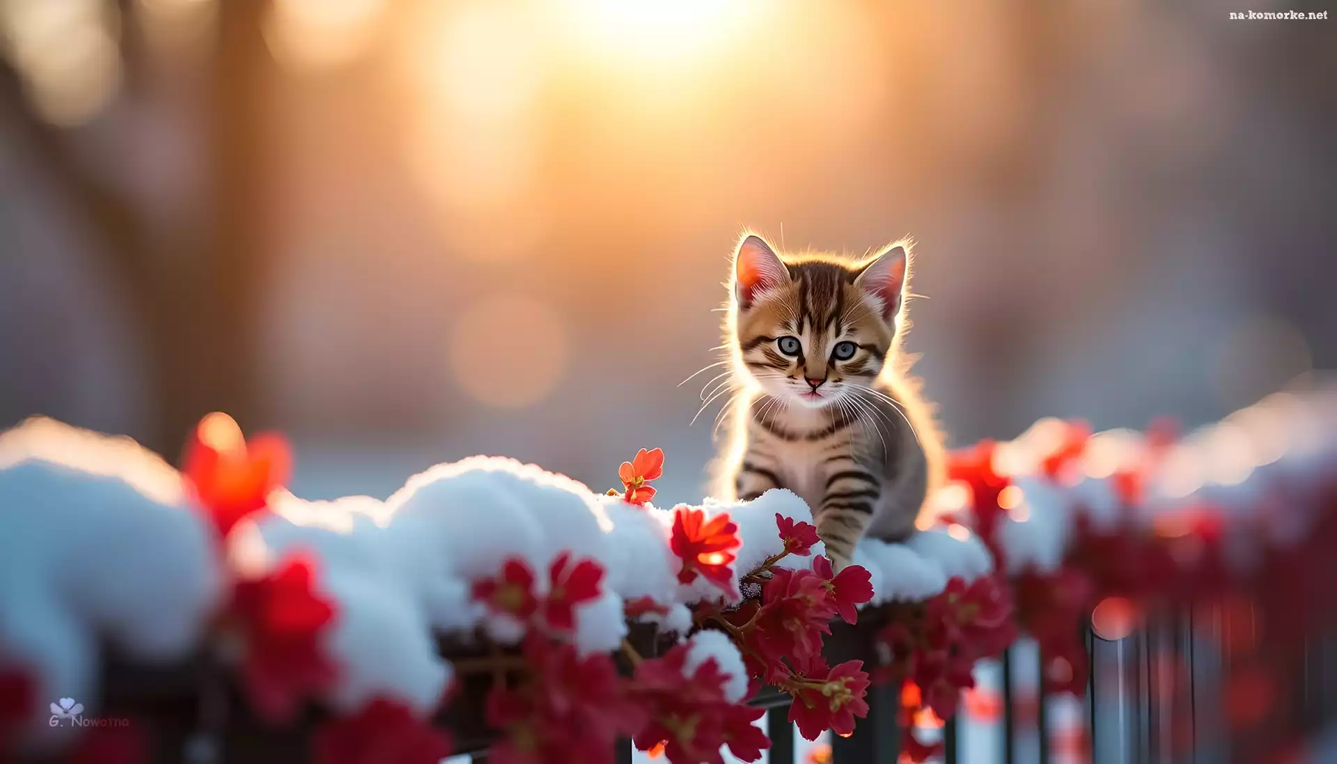 Rośliny, Śnieg, Mały, Grafika, Płot, Czerwone, Kot na Komórkę