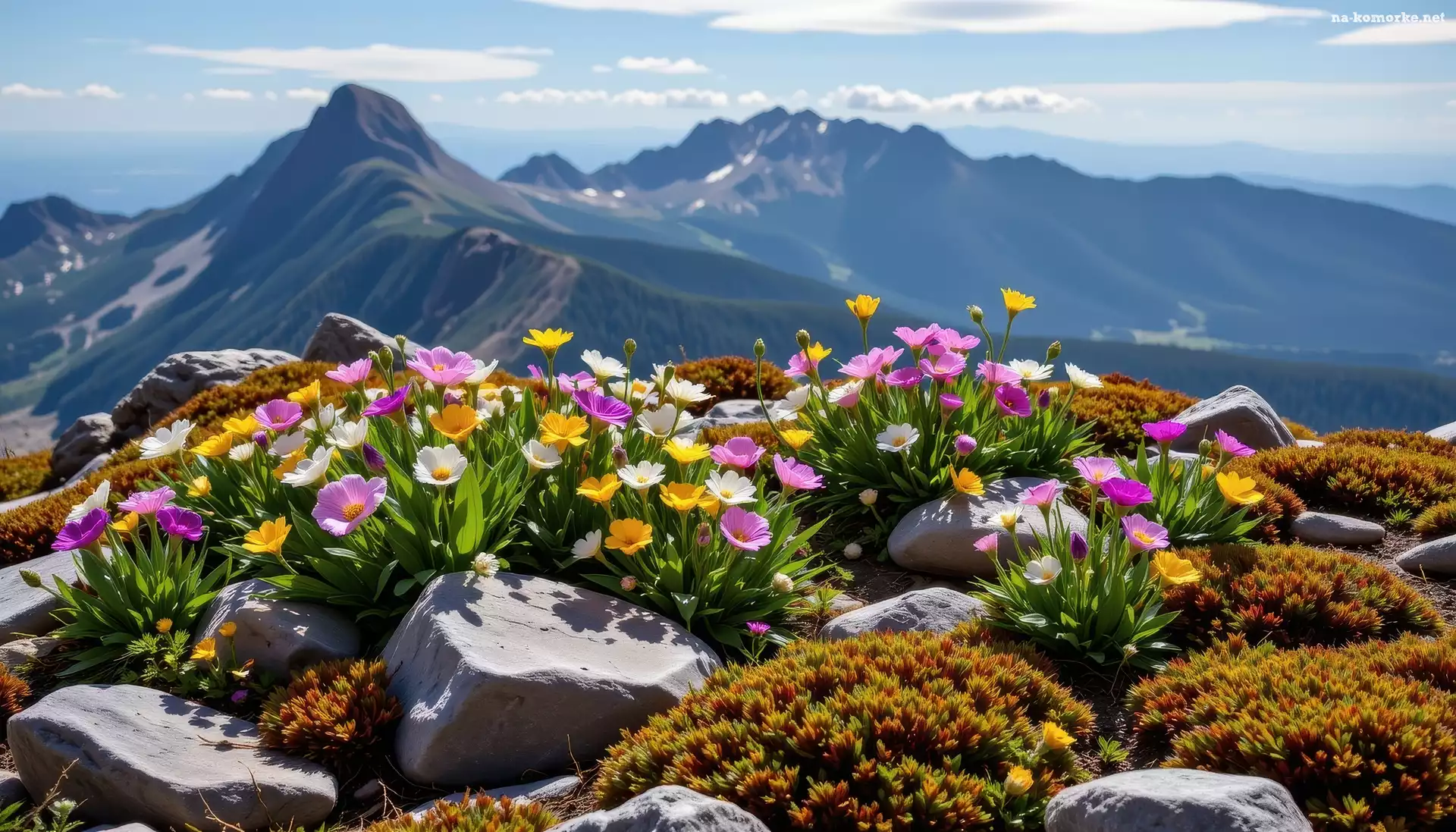 Góry, Kolorowe, Mech, Grafika AI, Kamienie, Kwiaty na Komórkę