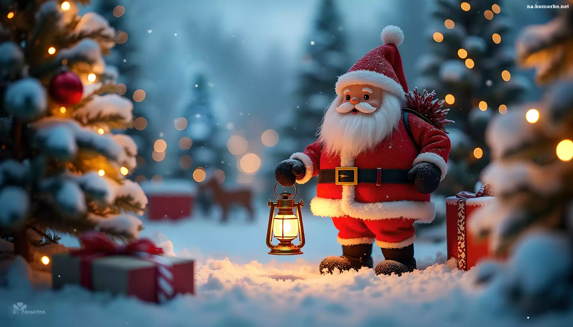 Śnieg, Święty, Zima, Grafika, Lampion, Mikołaj na Komórkę
