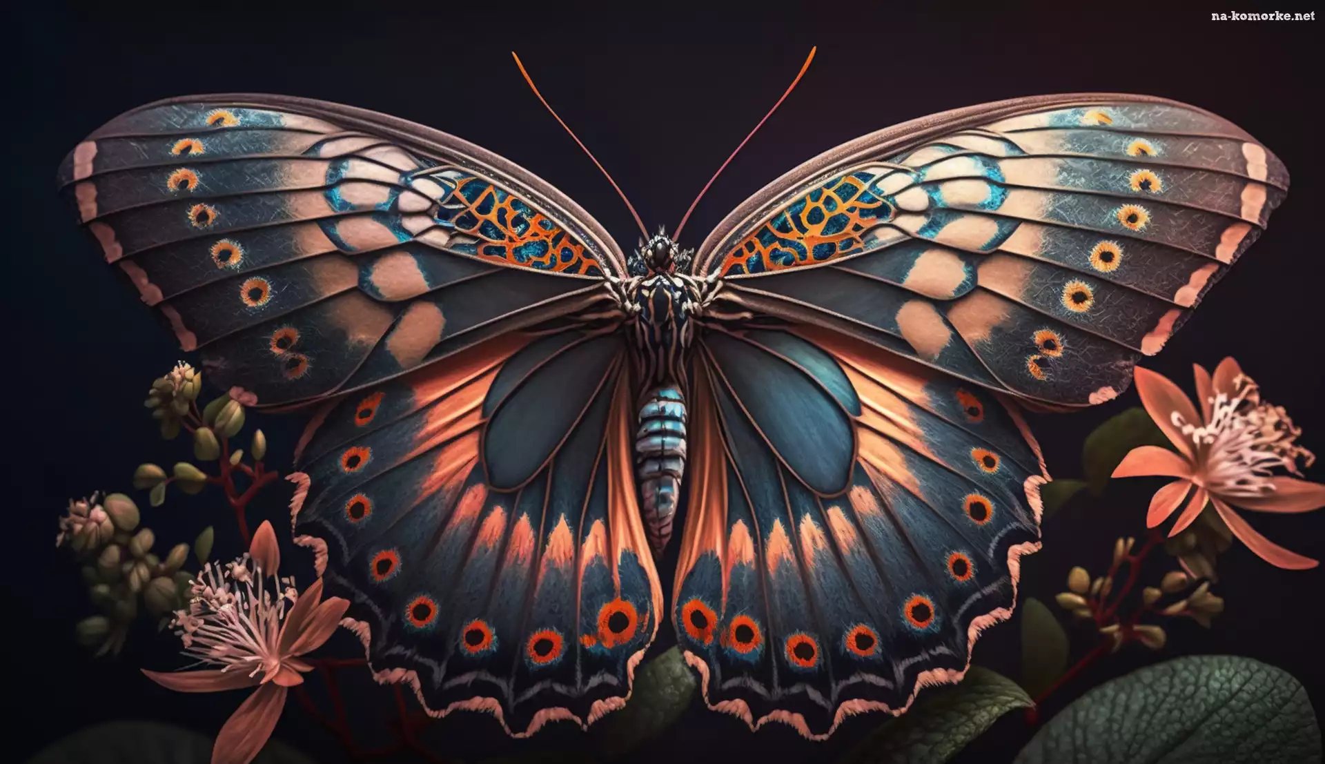 Kwiaty, Kolorowy, Skrzydła, Grafika, Rozpostarte, Motyl na Komórkę