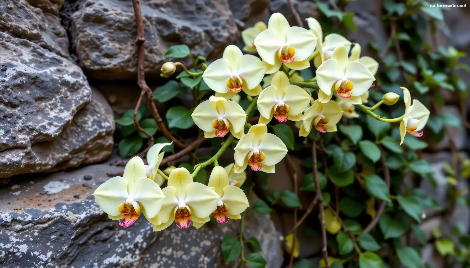 Kamienie, Kwitnące, Mur, Grafika AI, Storczyki, Żółte na Komórkę