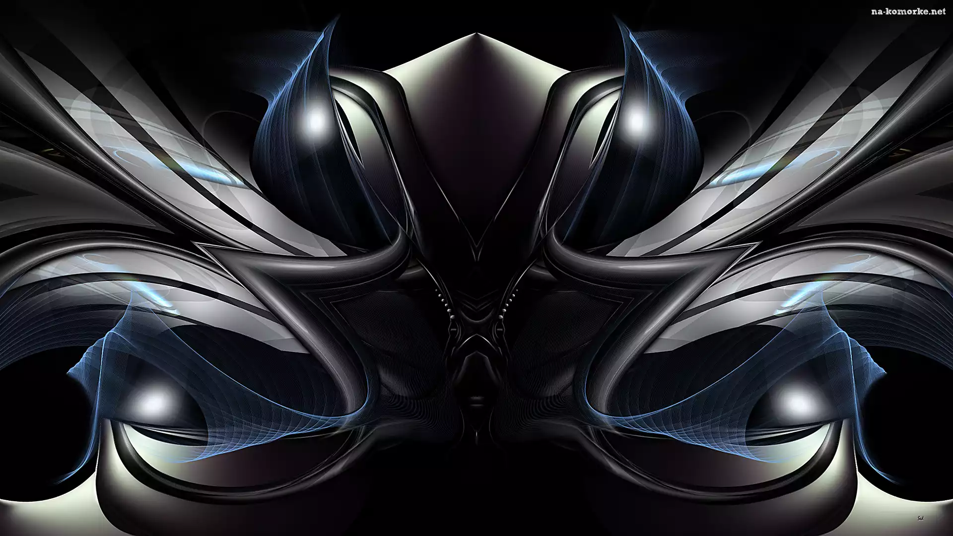 Grafika 3D, Czarno-niebieska, Abstrakcja na Komórkę