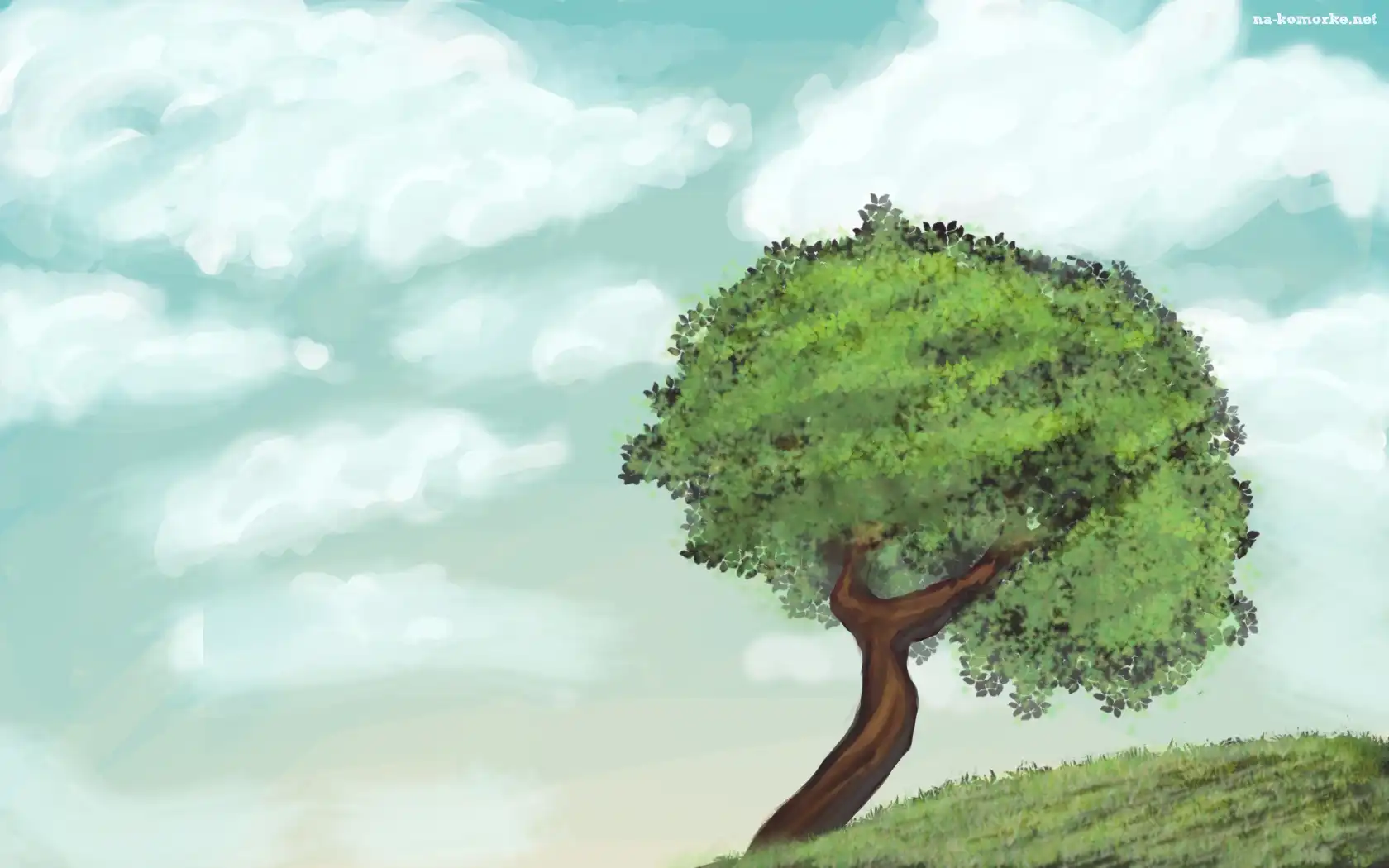 Grafika, Drzewo, Góra, Niebo, Chmury na Komórkę