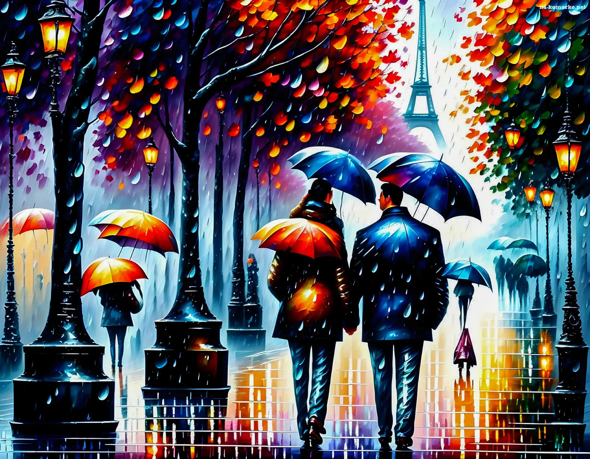 Paryż, Ludzie, Ulica, Grafika, Deszcz, Parasol na Komórkę