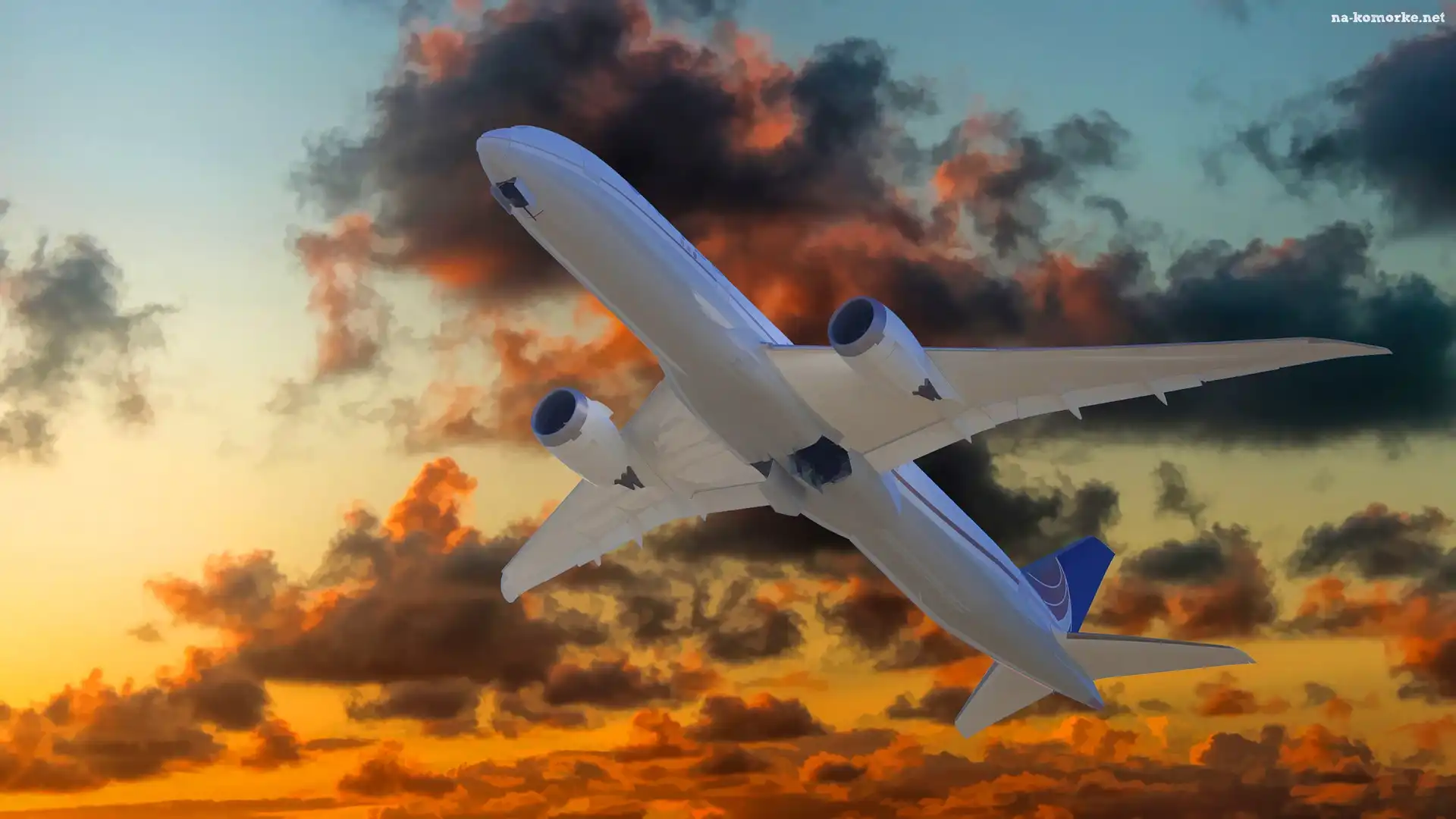Grafika 2D, Samolot Pasażerski, Chmury na Komórkę