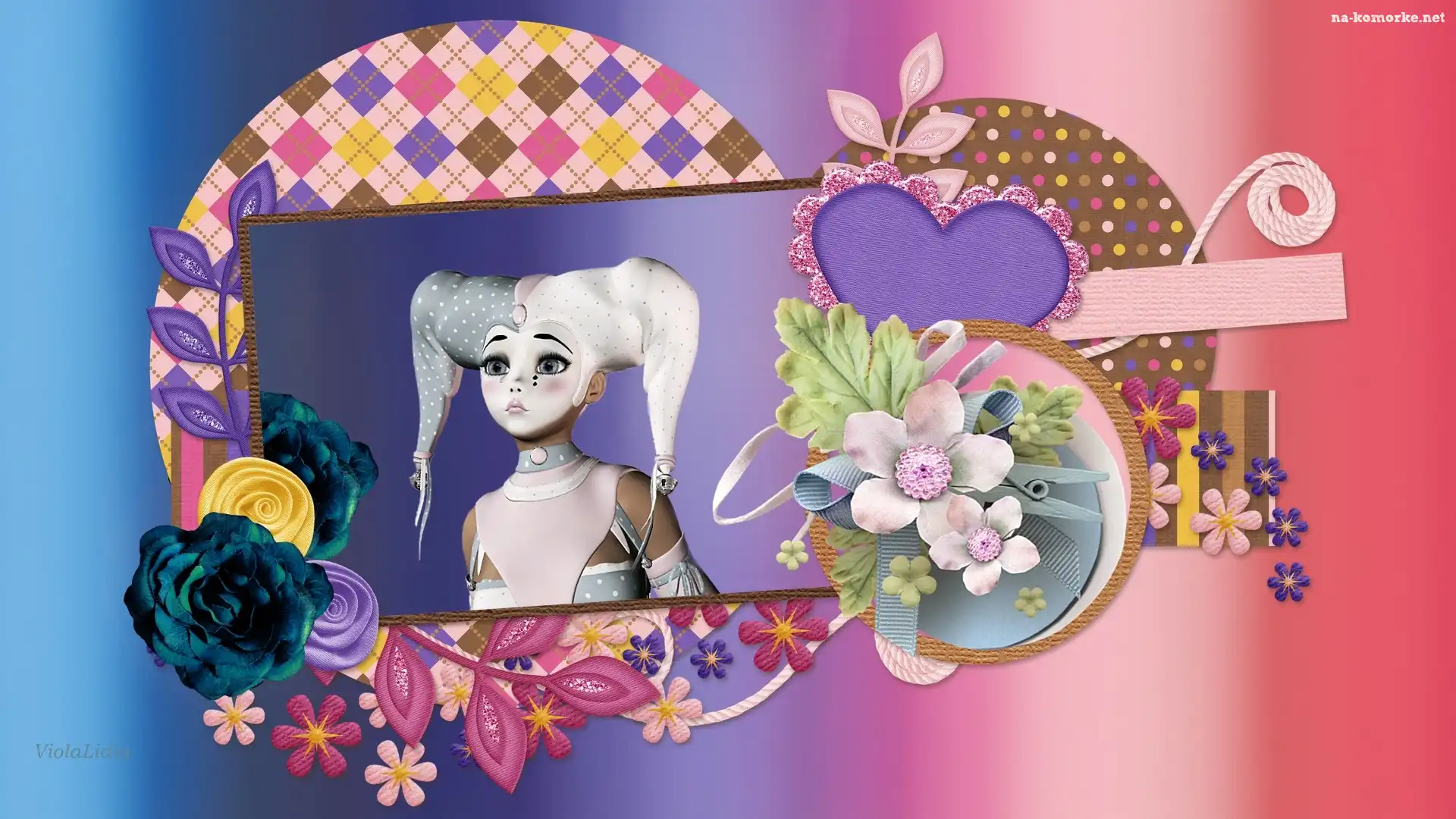 Grafika, Kwiaty, Pierrot, Laleczka na Komórkę