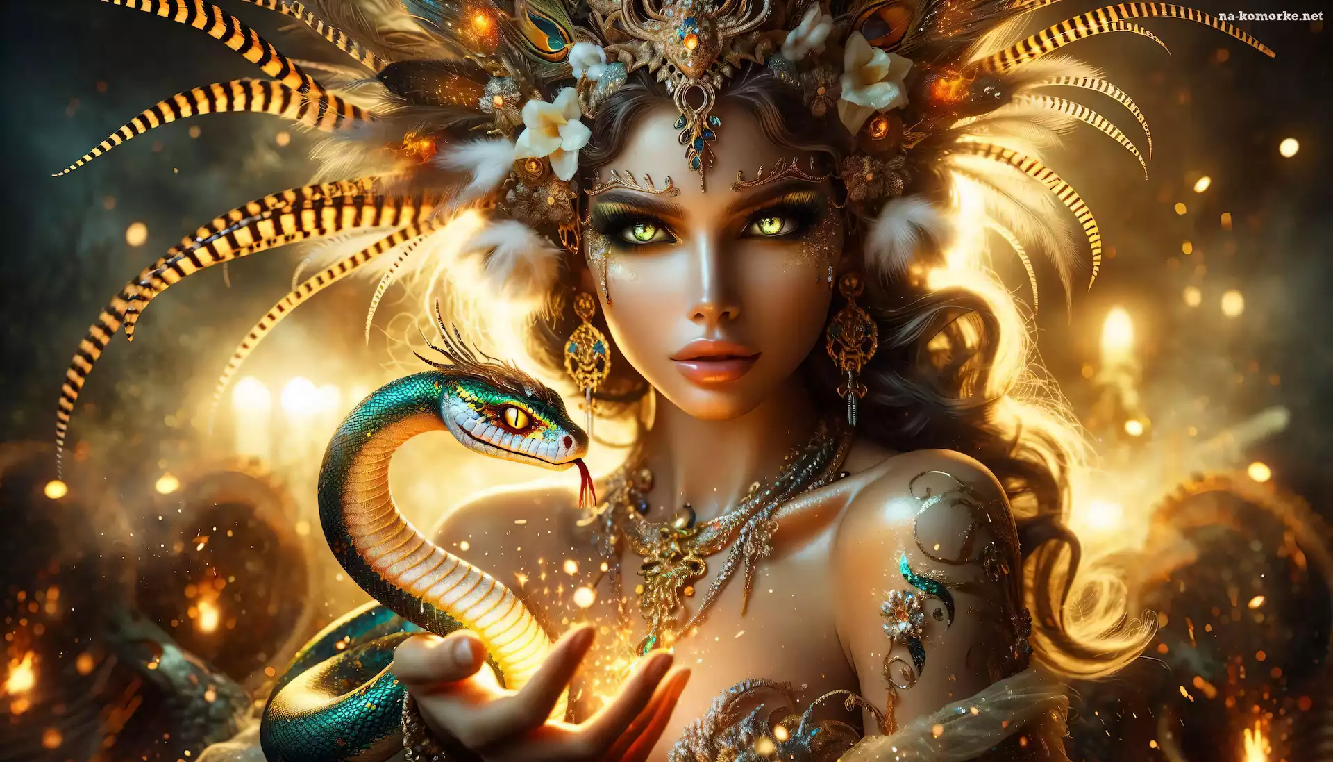 Kobieta, Grafika, Pióra, Wąż, Biżuteria na Komórkę