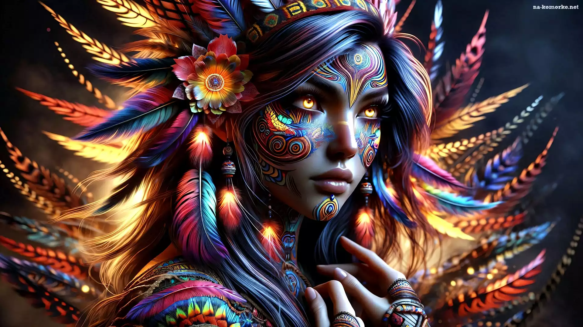 Tatuaż, Kobieta, Oczy, Grafika, Żółte, Pióra na Komórkę