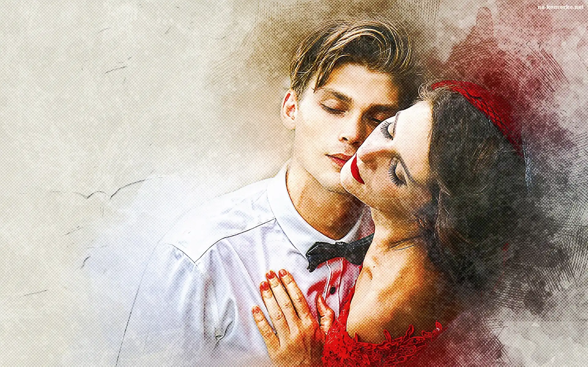 Grafika, Kobieta, Mężczyzna, Przytuleni, Miłość na Komórkę