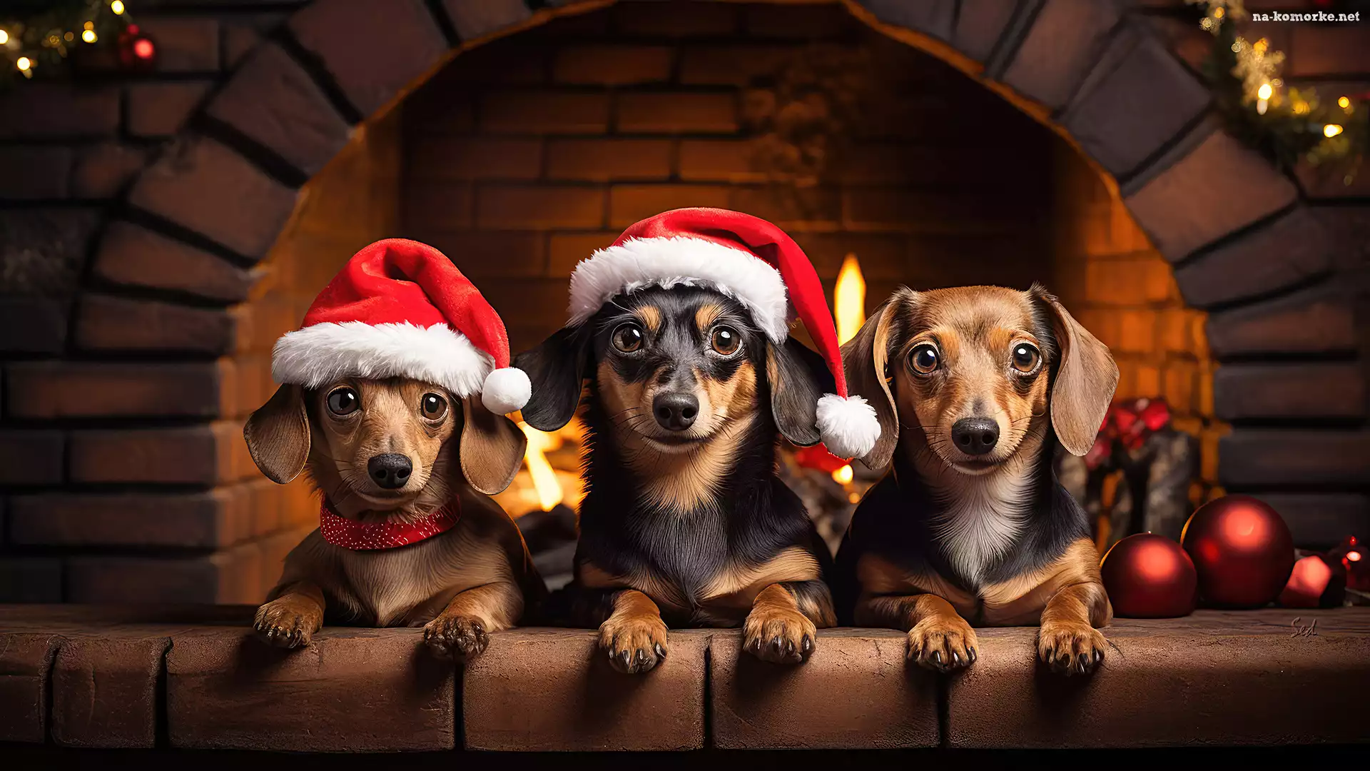 Mikołaja, Kominek, Psy, Grafika, Jamniki, Czapki, Trzy na Komórkę
