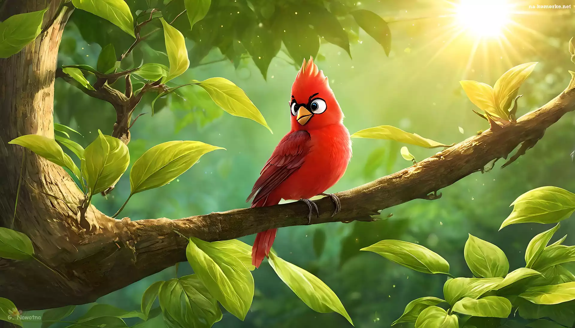 Liście, Czerwony, Drzewo, Grafika, Gałąź, Ptak na Komórkę