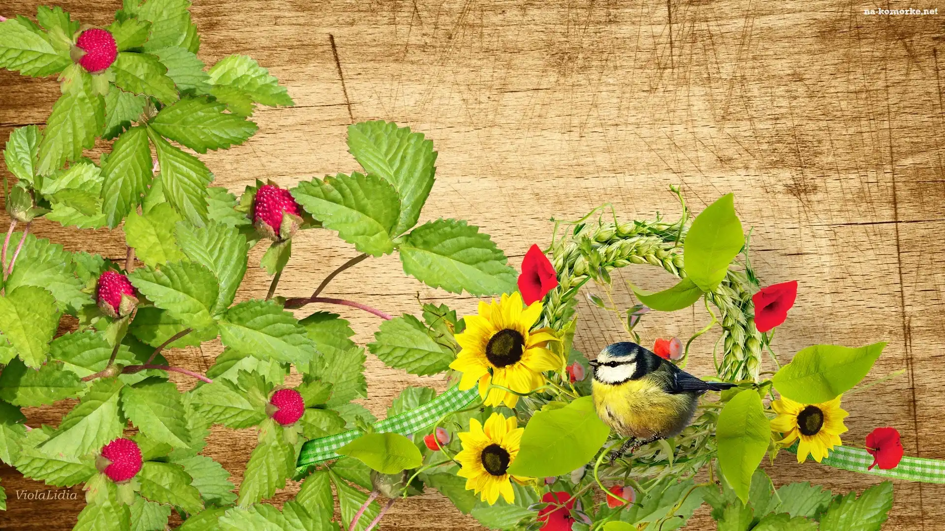 Grafika, Poziomki, Ptak, Sikorka na Komórkę