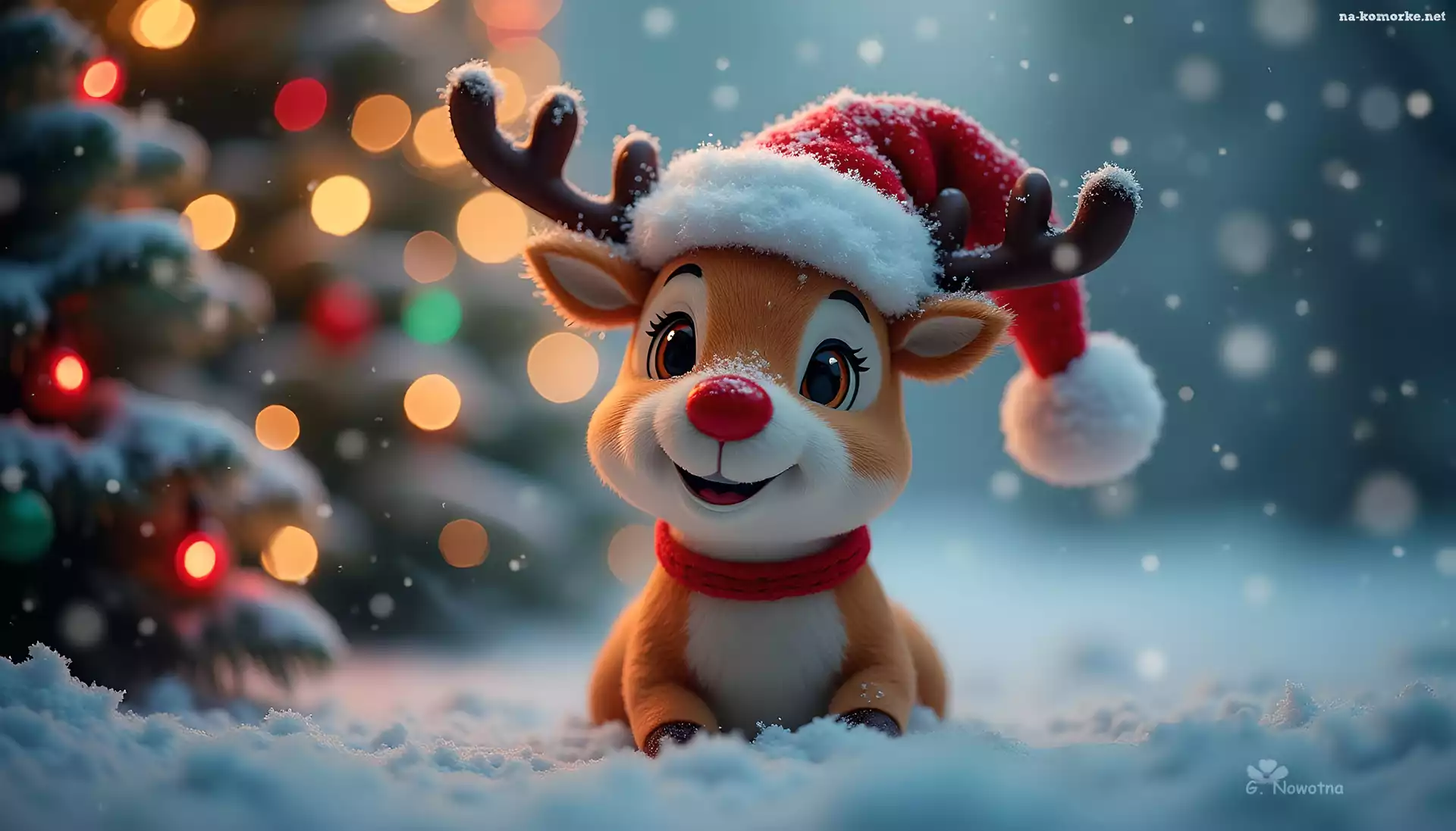 Mikołaja, Śnieg, Renifer, Grafika, Czerwononosy, Czapka, Rudolf na Komórkę