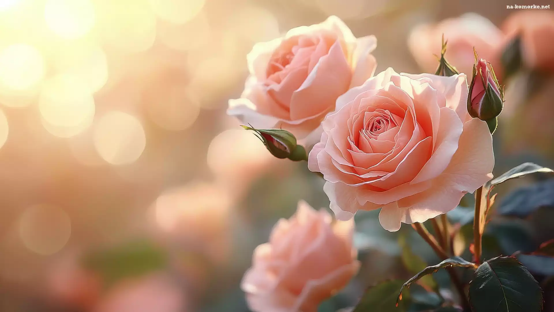 Światło, Kwiaty, Pąki, Grafika, Różowe, Róże na Komórkę