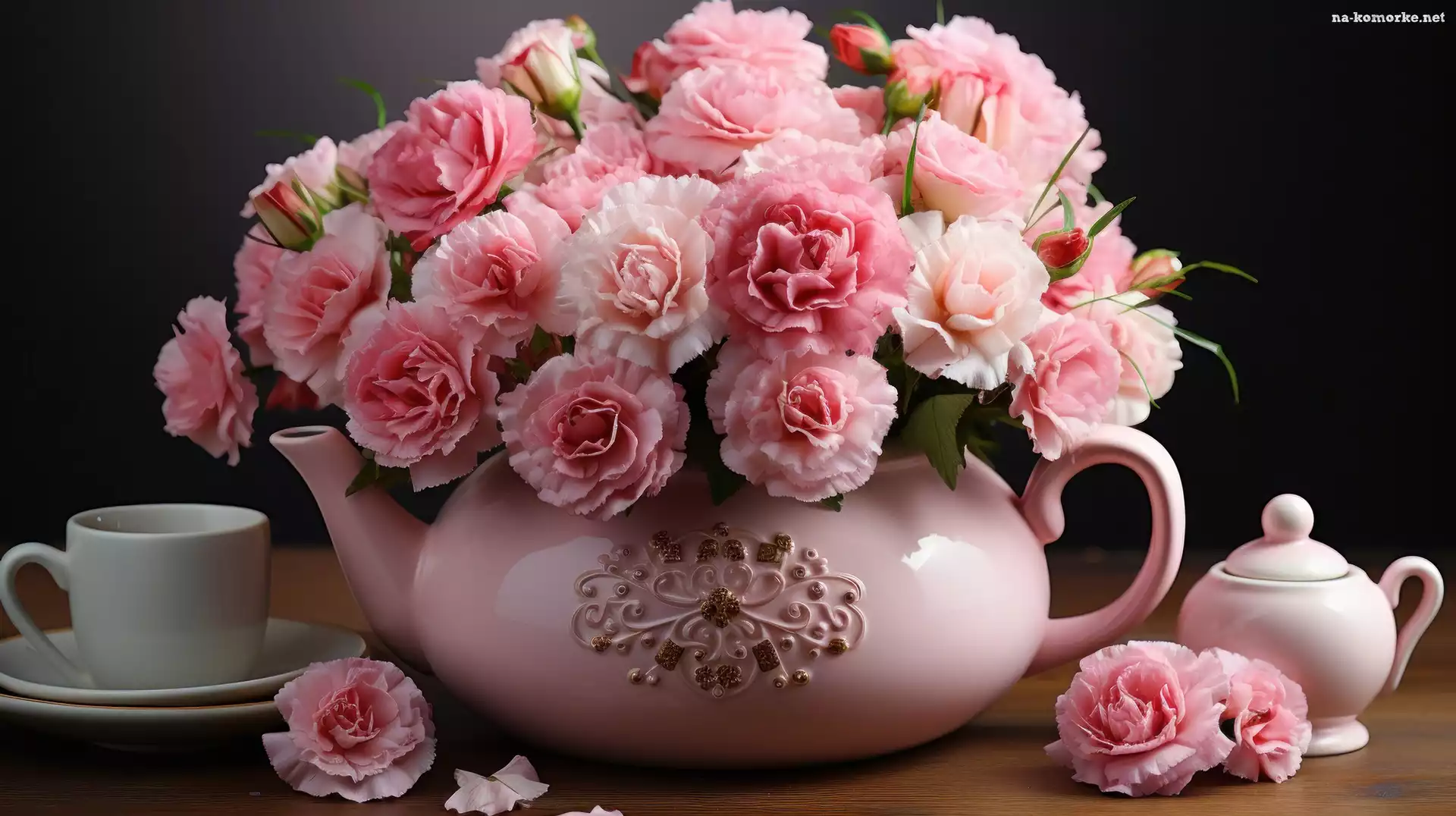 Imbryk, Goździki, Dzbanek, Grafika, Kwiaty, Różowe na Komórkę