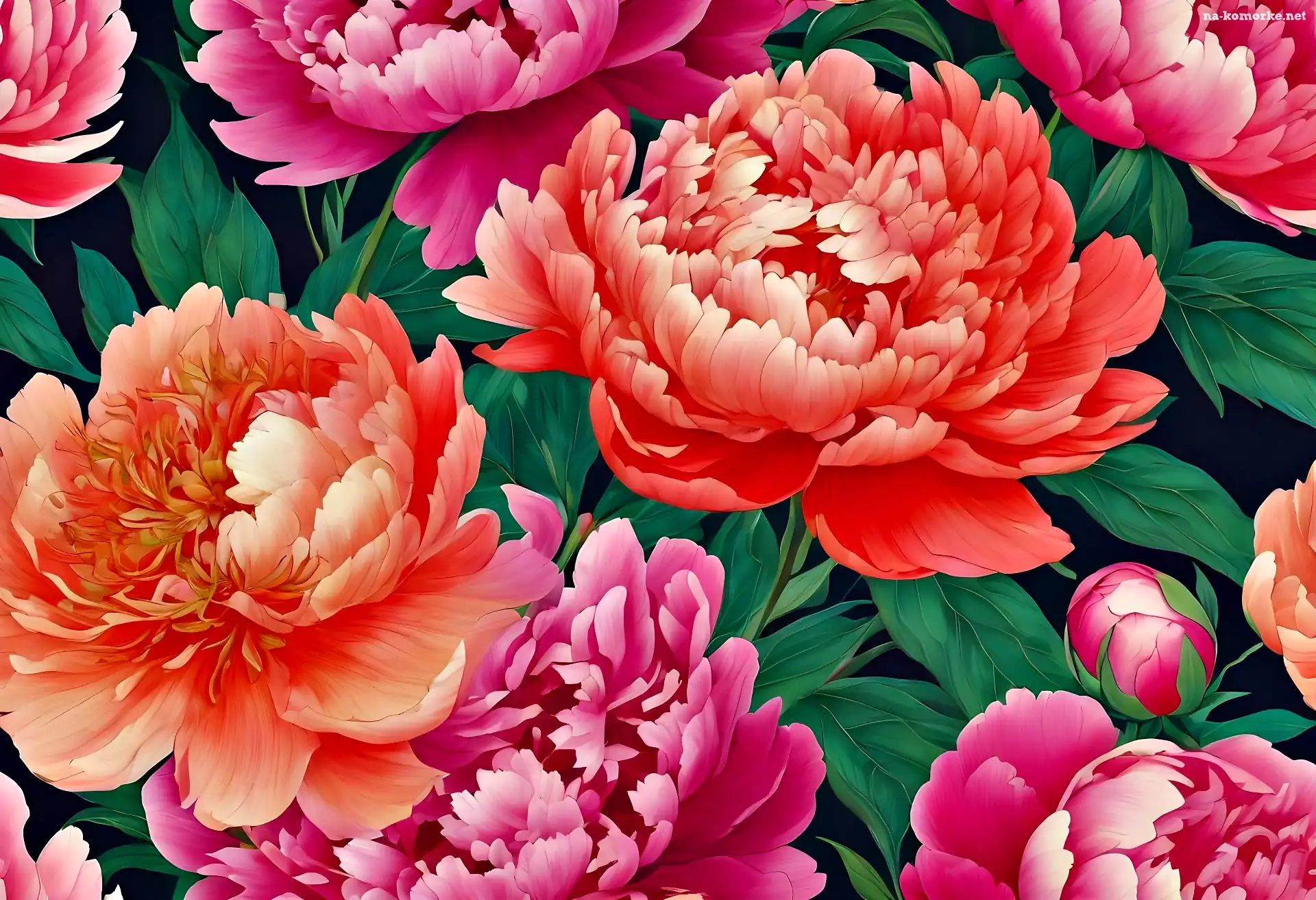 Liście, Czerwone, Piwonie, Grafika, Kwiaty, Różowe na Komórkę