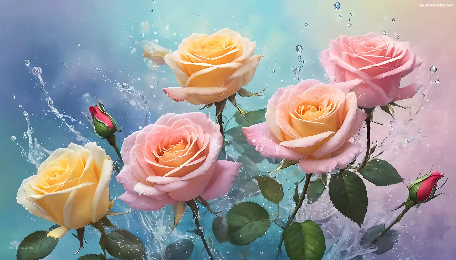 Kwiaty, Grafika, Różowo-żółte, Róże na Komórkę