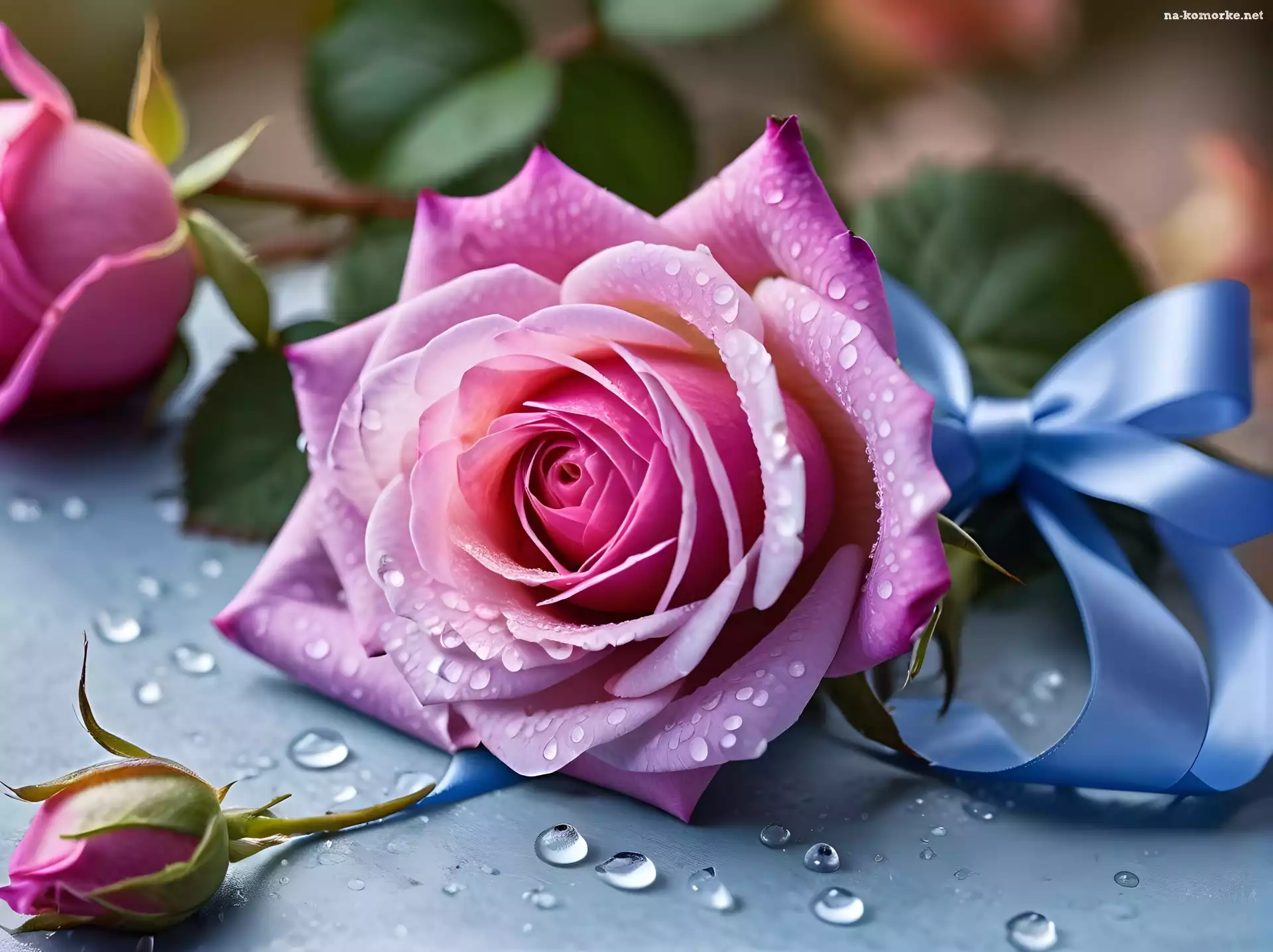 Krople, Róża, Pąki, Grafika, Kwiat, Różowy na Komórkę