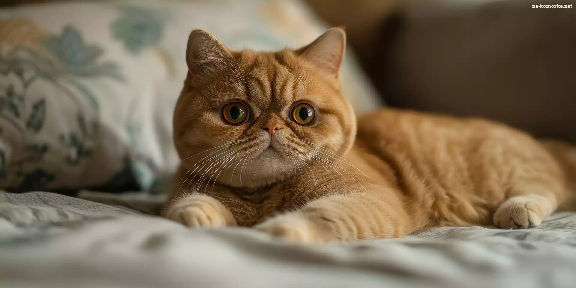 Łóżko, Grafika, Rudy, Kot egzotyczny na Komórkę
