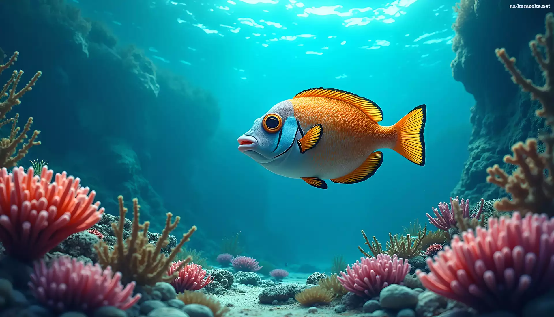 Skały, Żółta, Koralowce, Grafika, Woda, Ryba na Komórkę