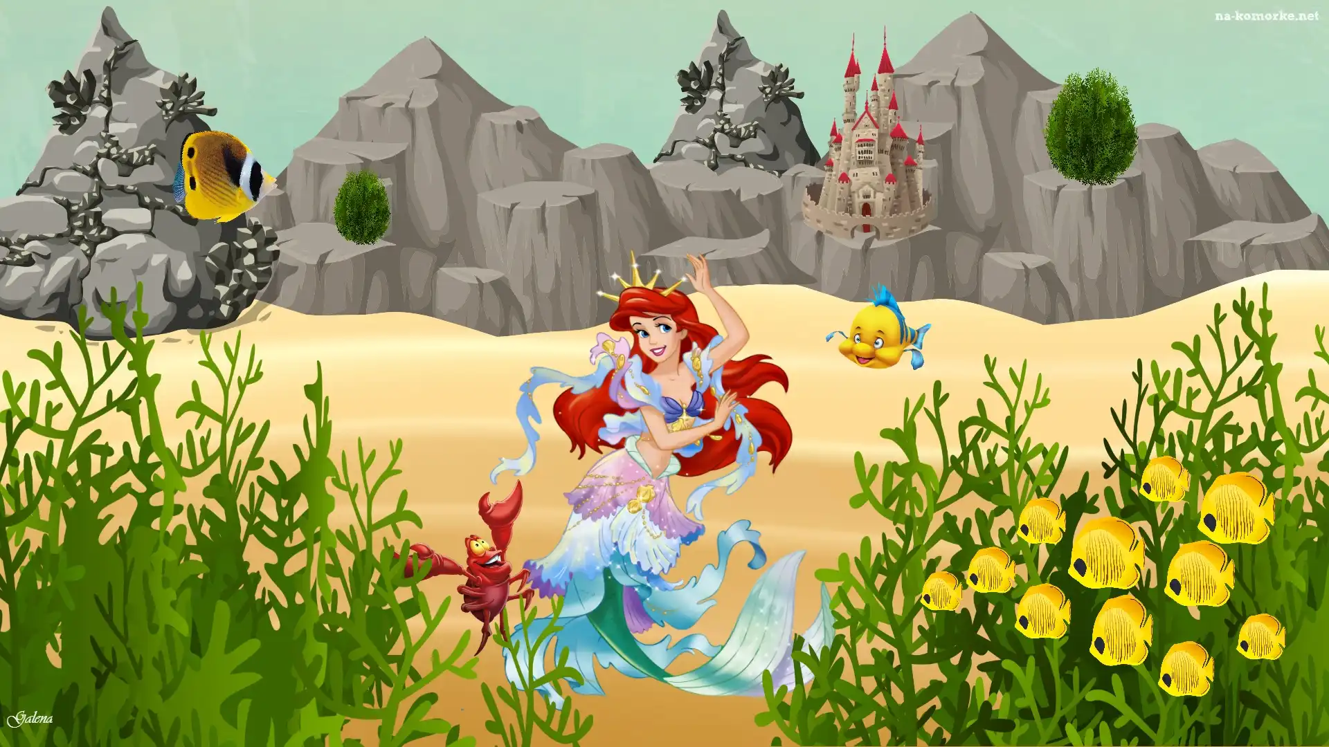 Ocean, Grafika, Dla dzieci, Ryby, Arielka, Zamek, Skały na Komórkę