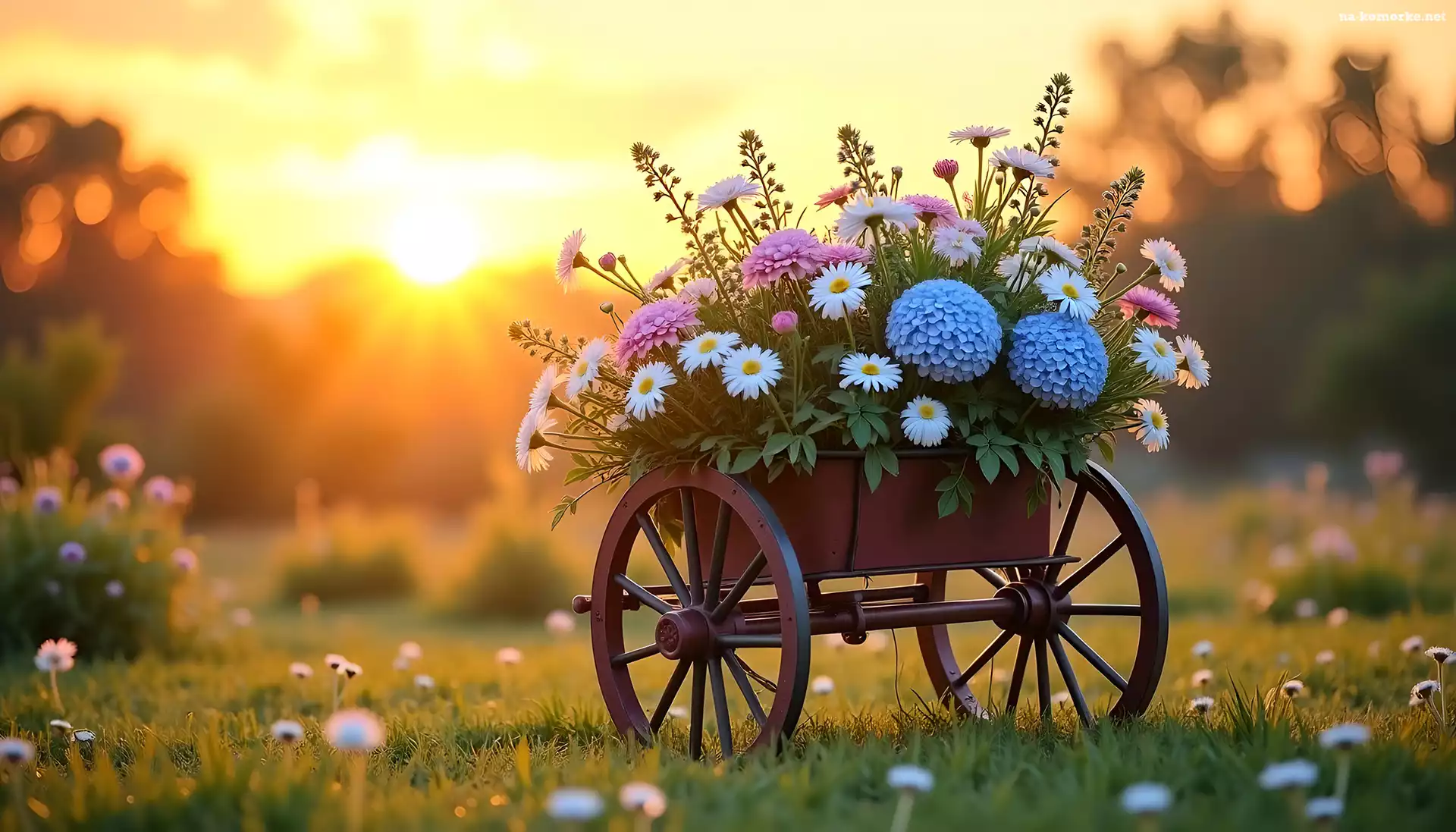 Trawa, Dwukołowy, Słońce, Grafika AI, Kwiaty, Wózek na Komórkę