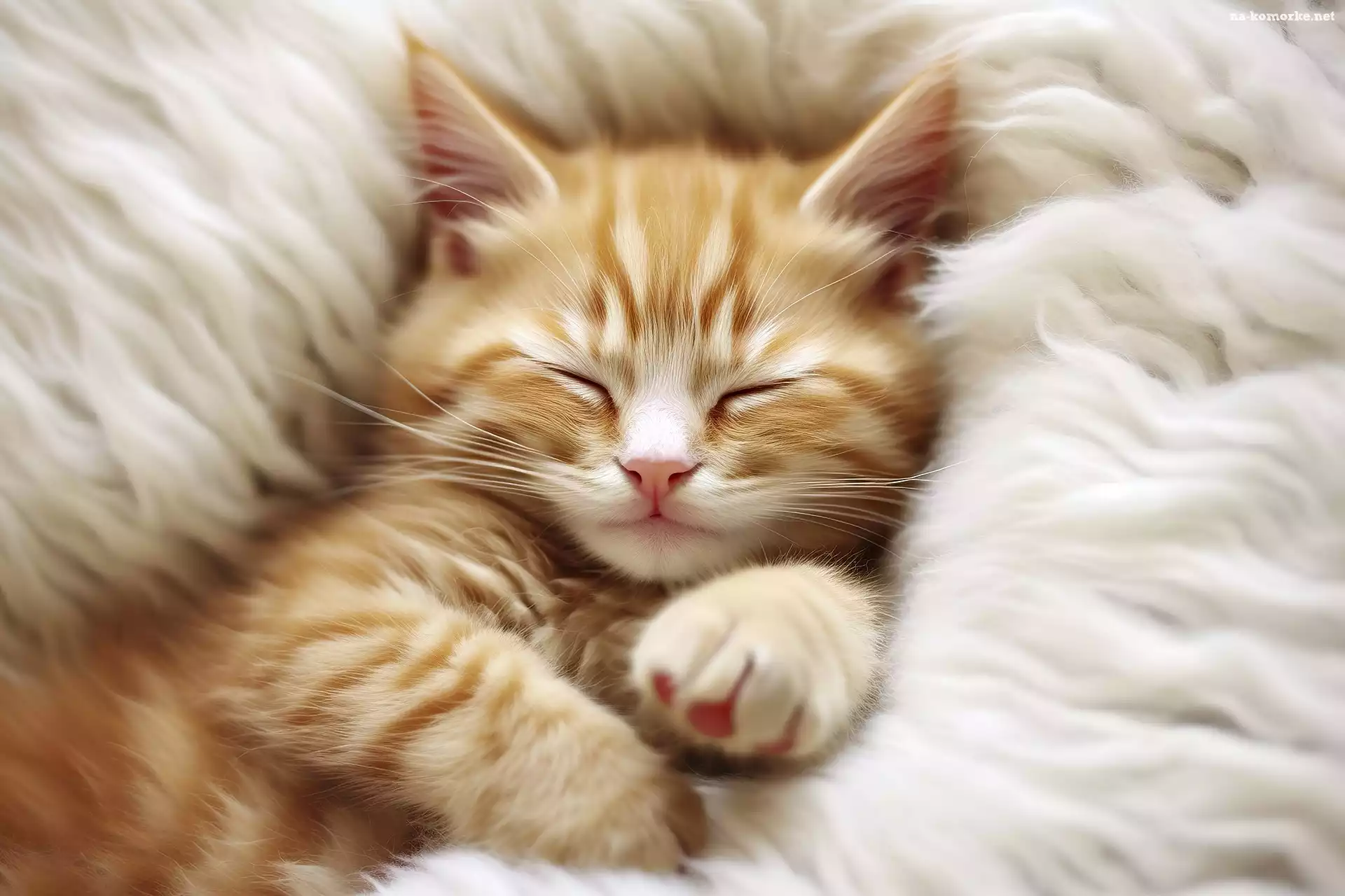 Koc, Rudy, Włochaty, Grafika, Kot, Śpiący na Komórkę