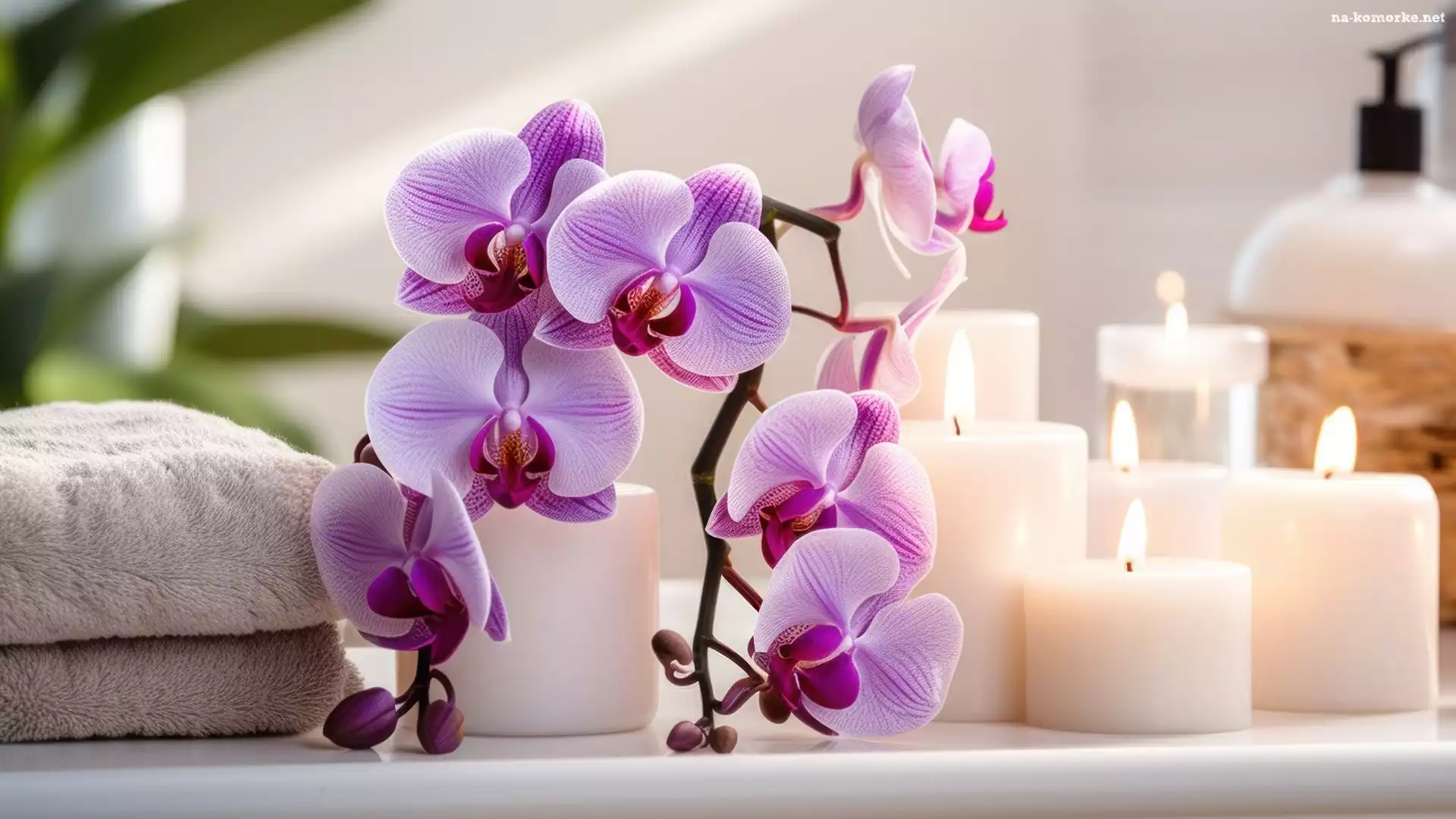Relaks, Kwiat, Ręczniki, Grafika, Świece, Storczyk na Komórkę