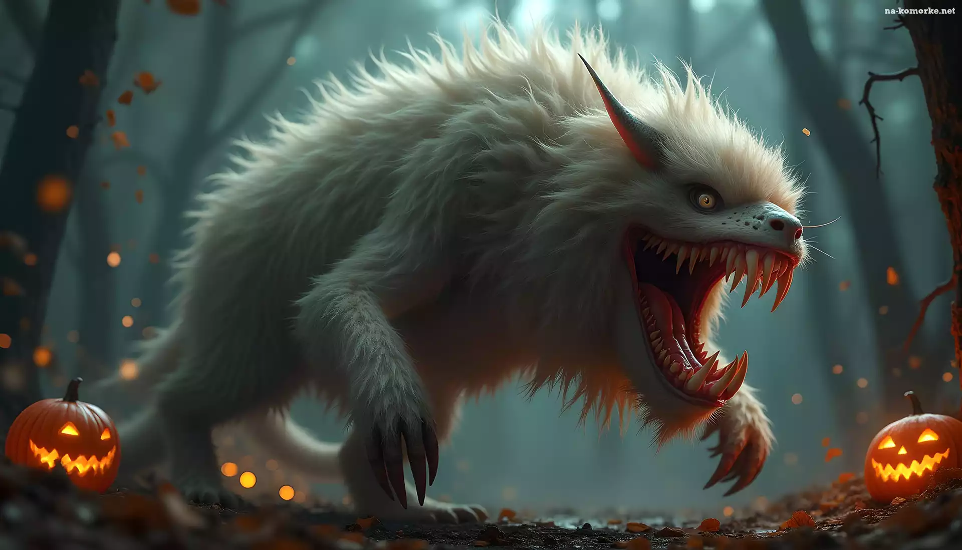 Halloween, Włochaty, Dynie, Grafika, Zęby, Stwór na Komórkę