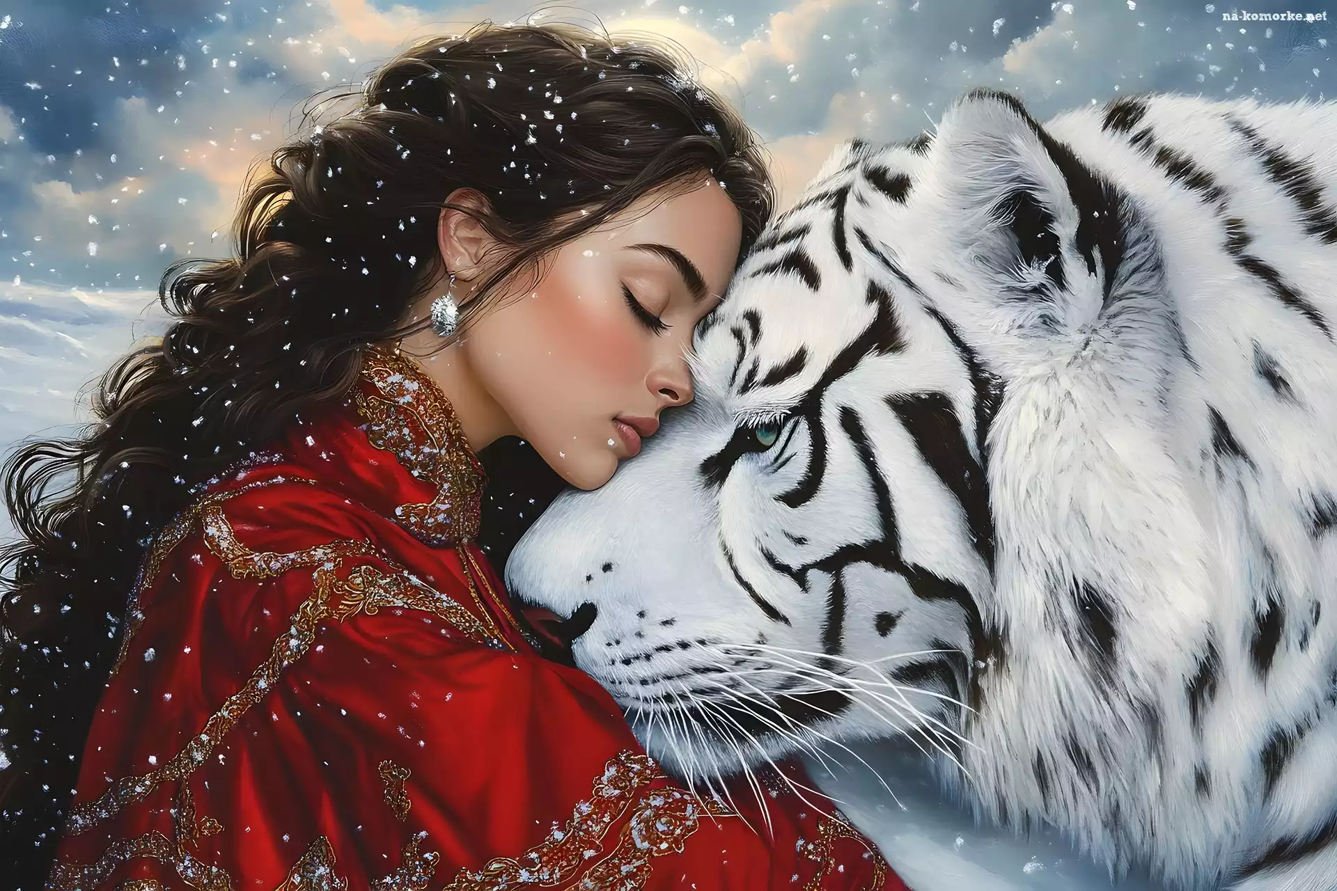 Biały, Dziewczyna, Tygrys, Grafika, Czerwona, Suknia na Komórkę