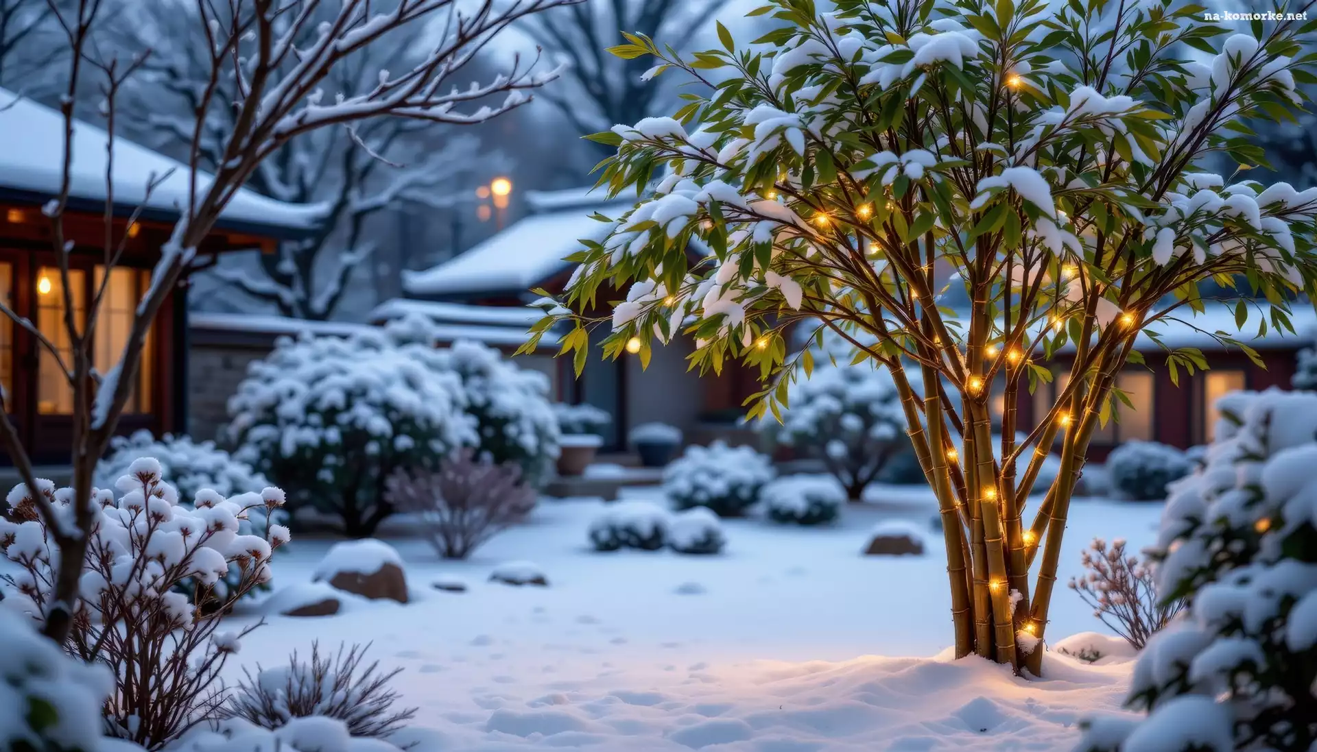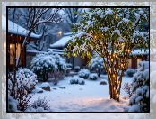 Dom, Zima, Światełka, Grafika AI, Drzewko, Ogród na Komórkę