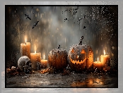 Deszcz, Halloween, Świece, Grafika AI, Czaszka, Dynie na Komórkę