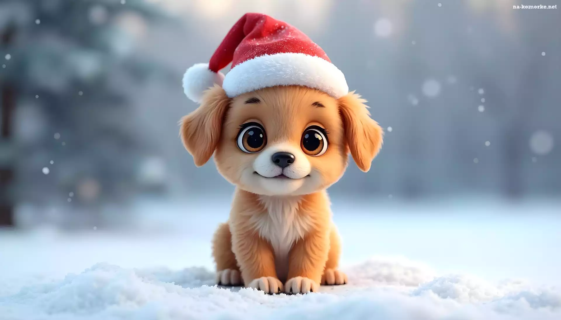 Śnieg, Pies, Mikołaja, Grafika, Czapka, Szczeniak na Komórkę
