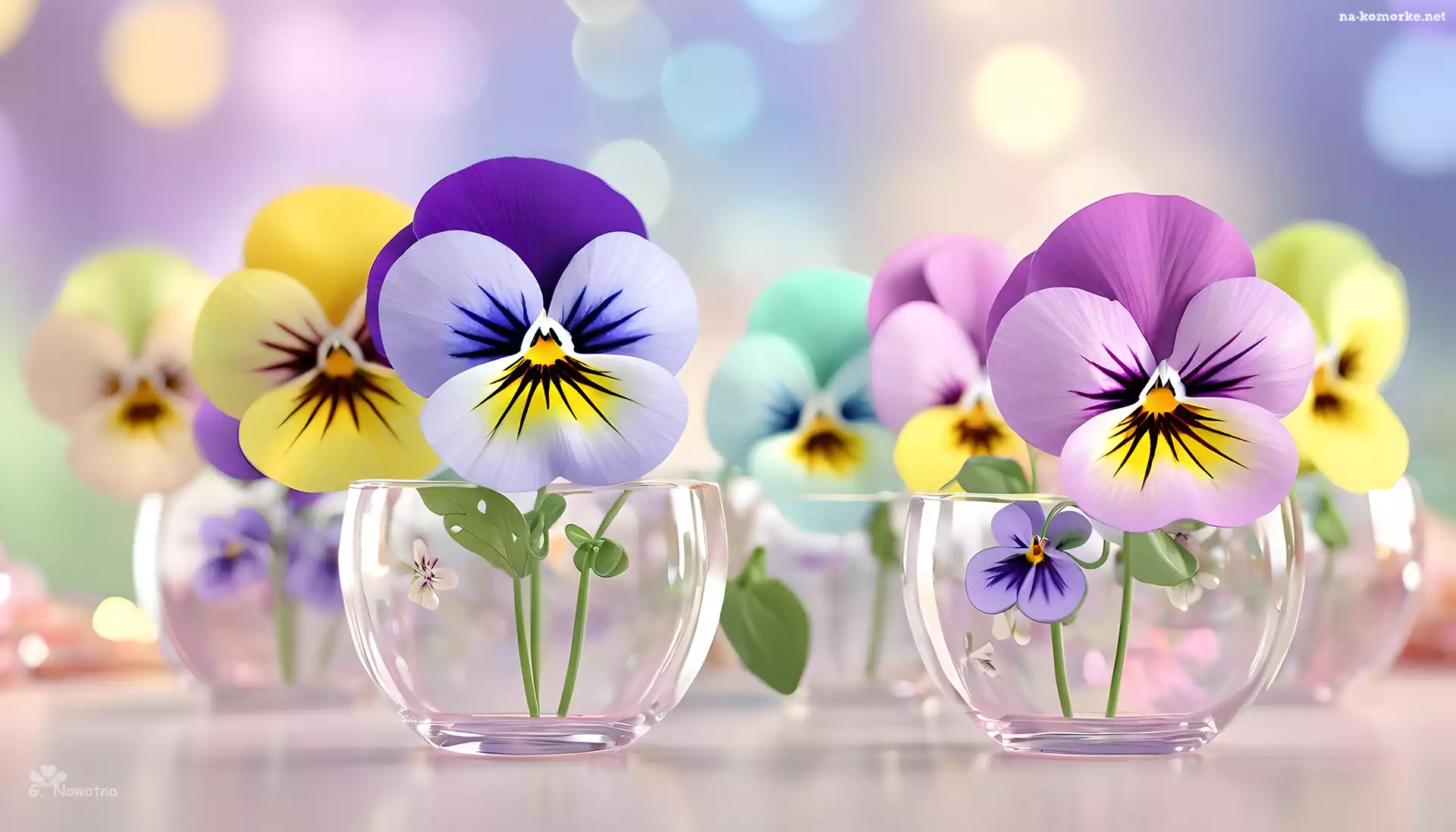 Bratki, Grafika, Szklane, Kwiaty, Naczynia na Komórkę