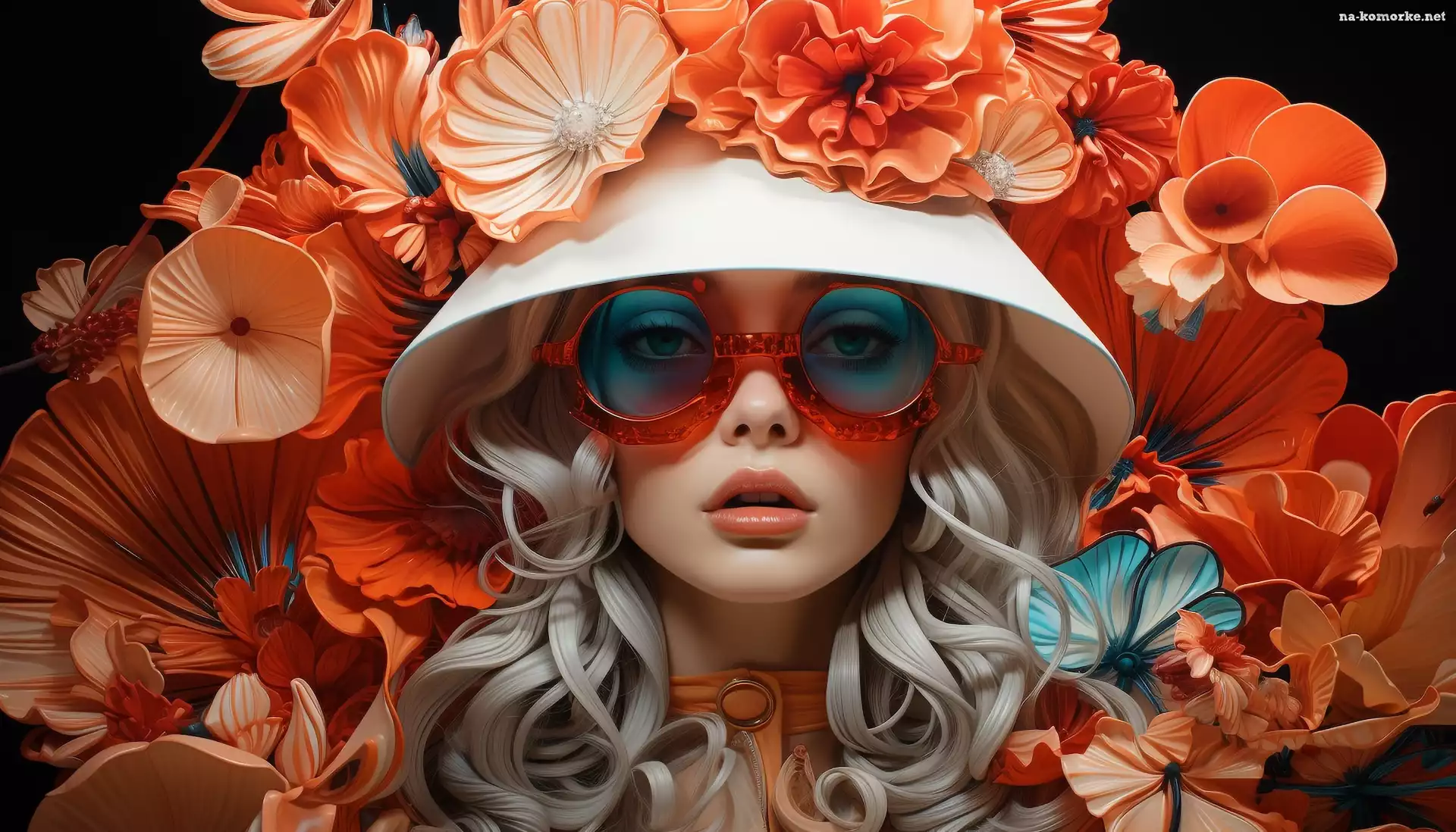 Kwiaty, Kobieta, Kapelusz, Grafika, Okulary, Twarz na Komórkę