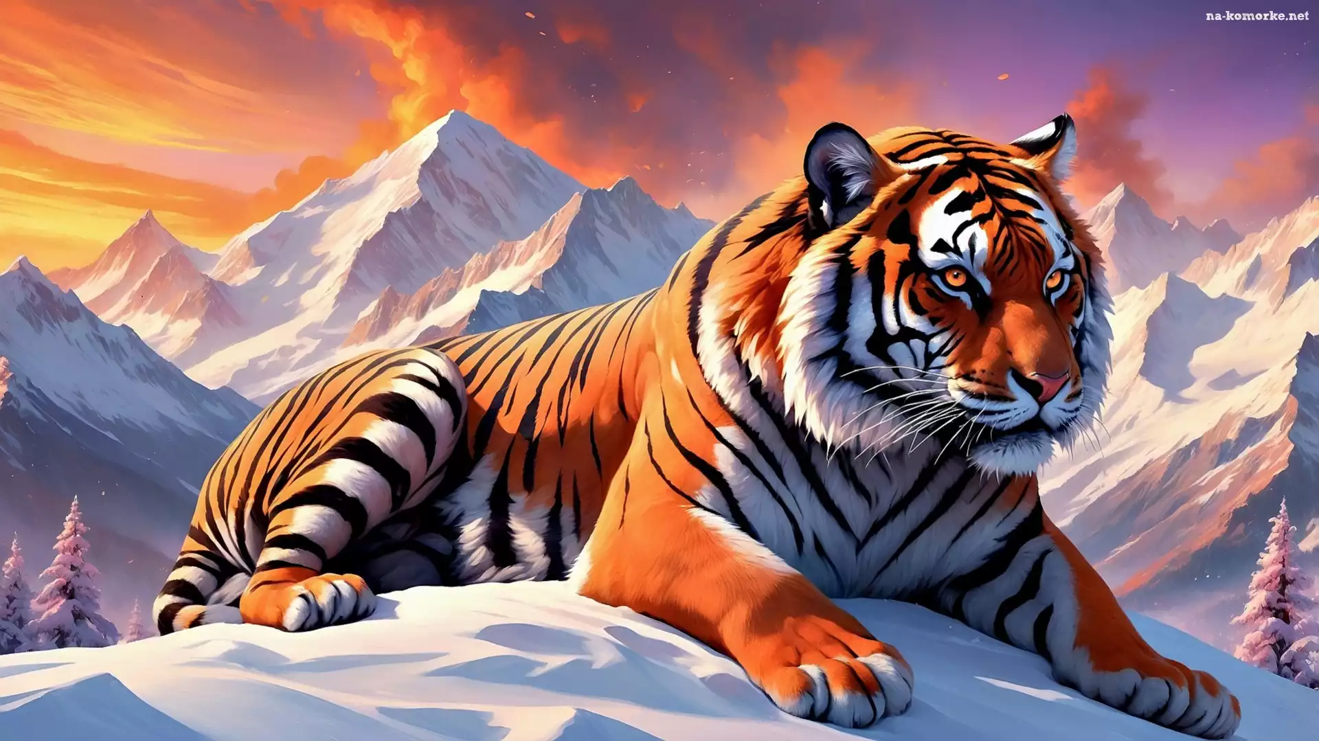 Góry, Leżący, Zima, Grafika, Śnieg, Tygrys na Komórkę